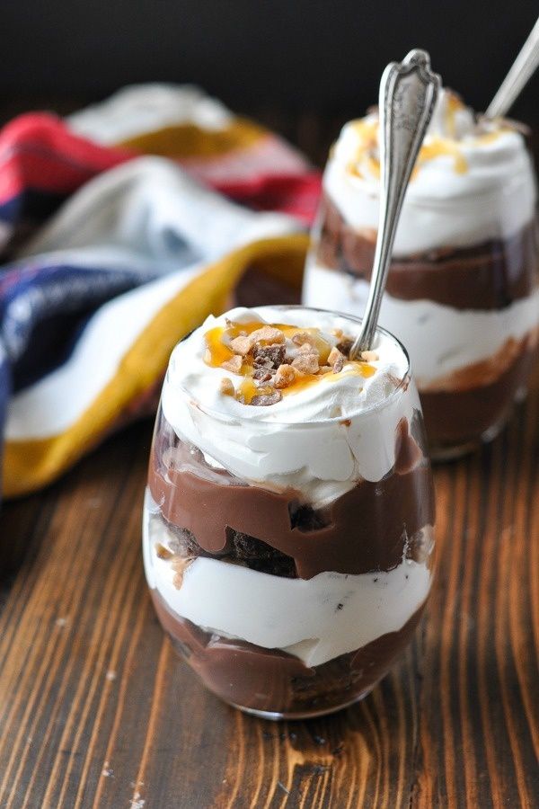 A Chocolate Trifle made with layers of brownies, chocolate pudding, caramel and whipped topping offers the perfect easy dessert recipe for any occasion! Prepare the treat in one large dish or in individual cups for a convenient, make-ahead option that will wow your guests!