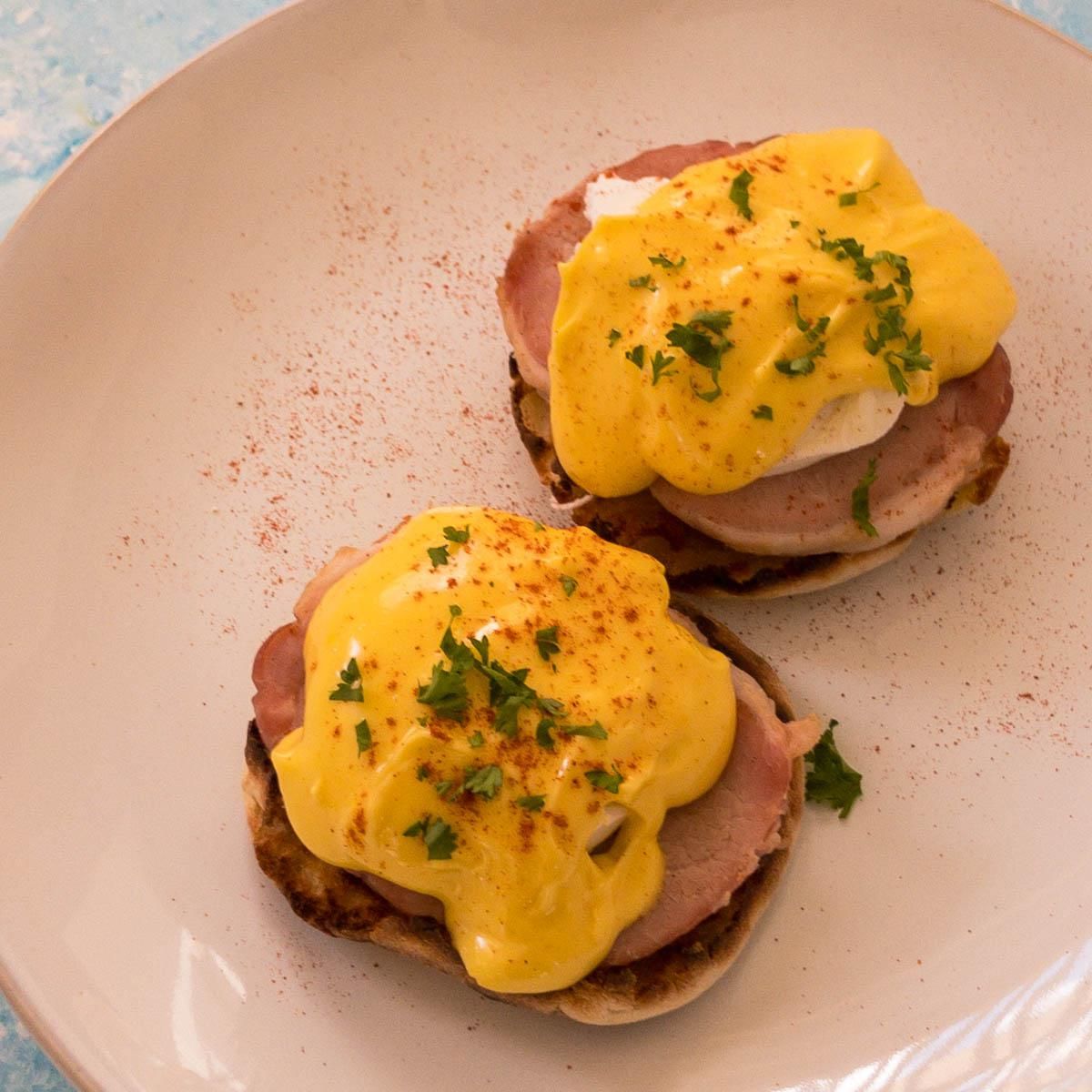 These Egg Benedicts will have your brunch friends coming back for more! Creamy poached eggs, fluffy English muffins, and a buttery Hollandaise sauce team-up.