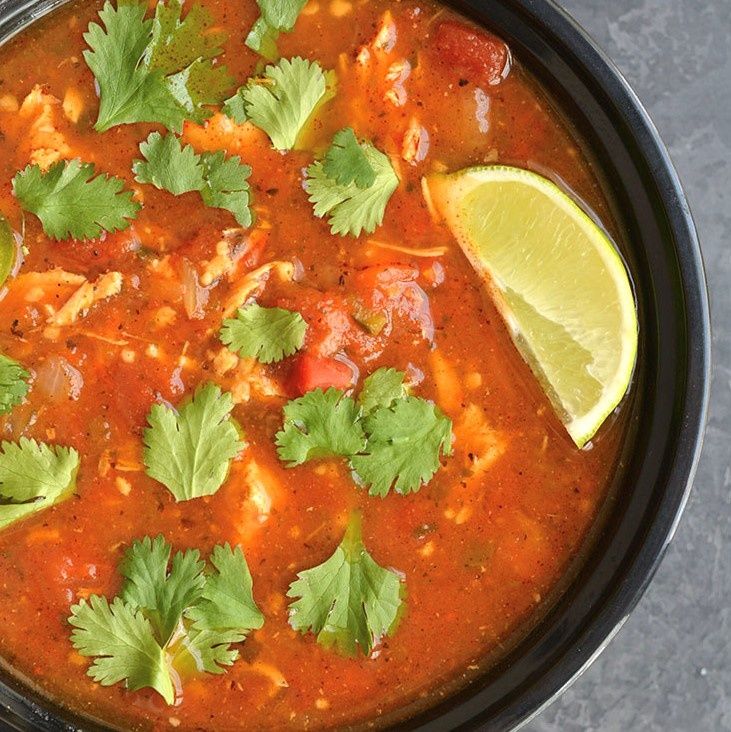 Meal Prep Chicken Tortilla Soup! A gluten free and Paleo soup that's nourishing and slightly spicy! Roasted then blended pasilla chilies and carrots give this soup amazing flavors. Made in 30 minutes in an Instant Pot with a stovetop option! Paleo + Low Calorie + Gluten Free