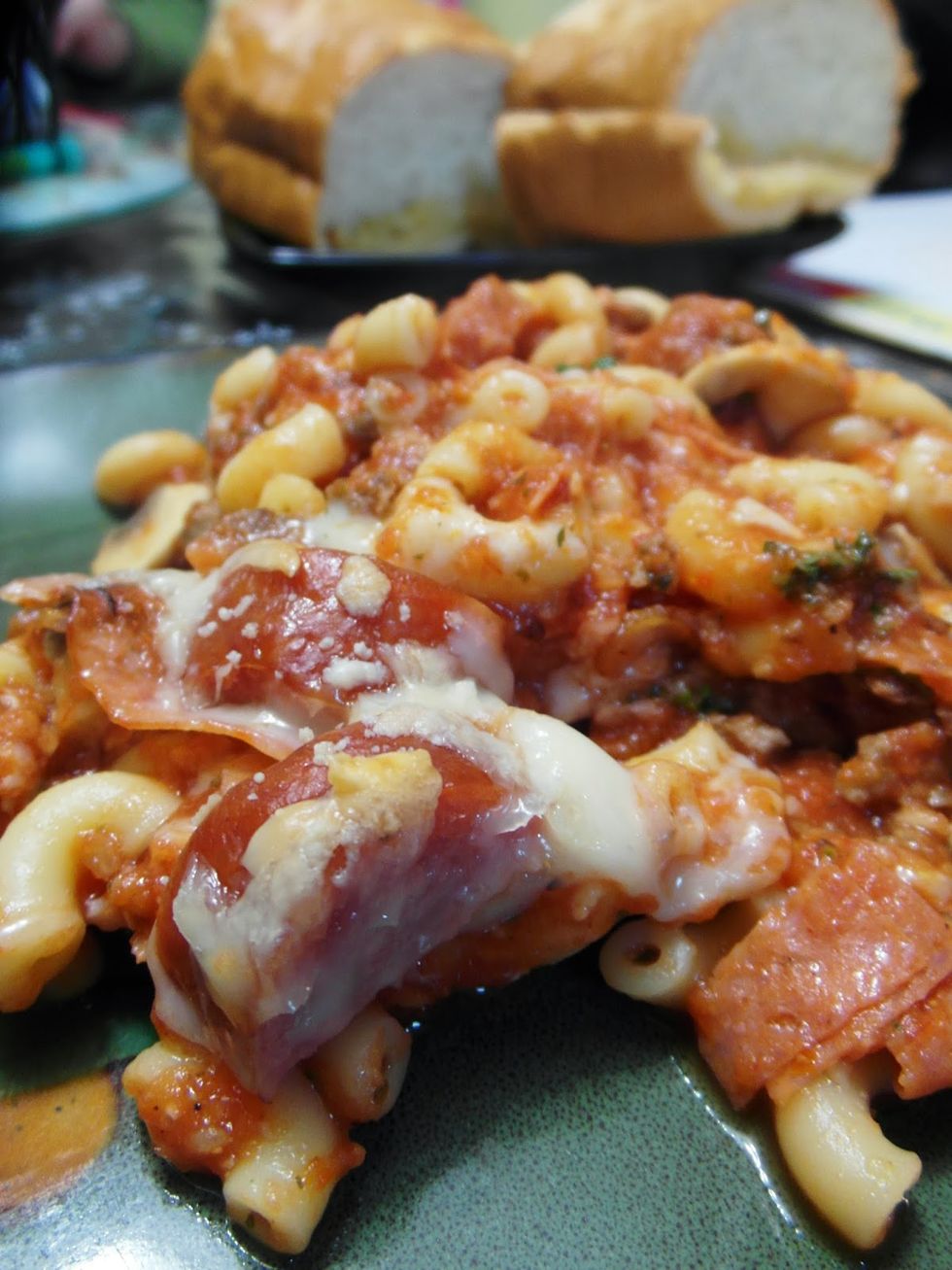 This pasta casserole takes 30 minutes and tastes just like a pizza pop! Comfort food at it's best!