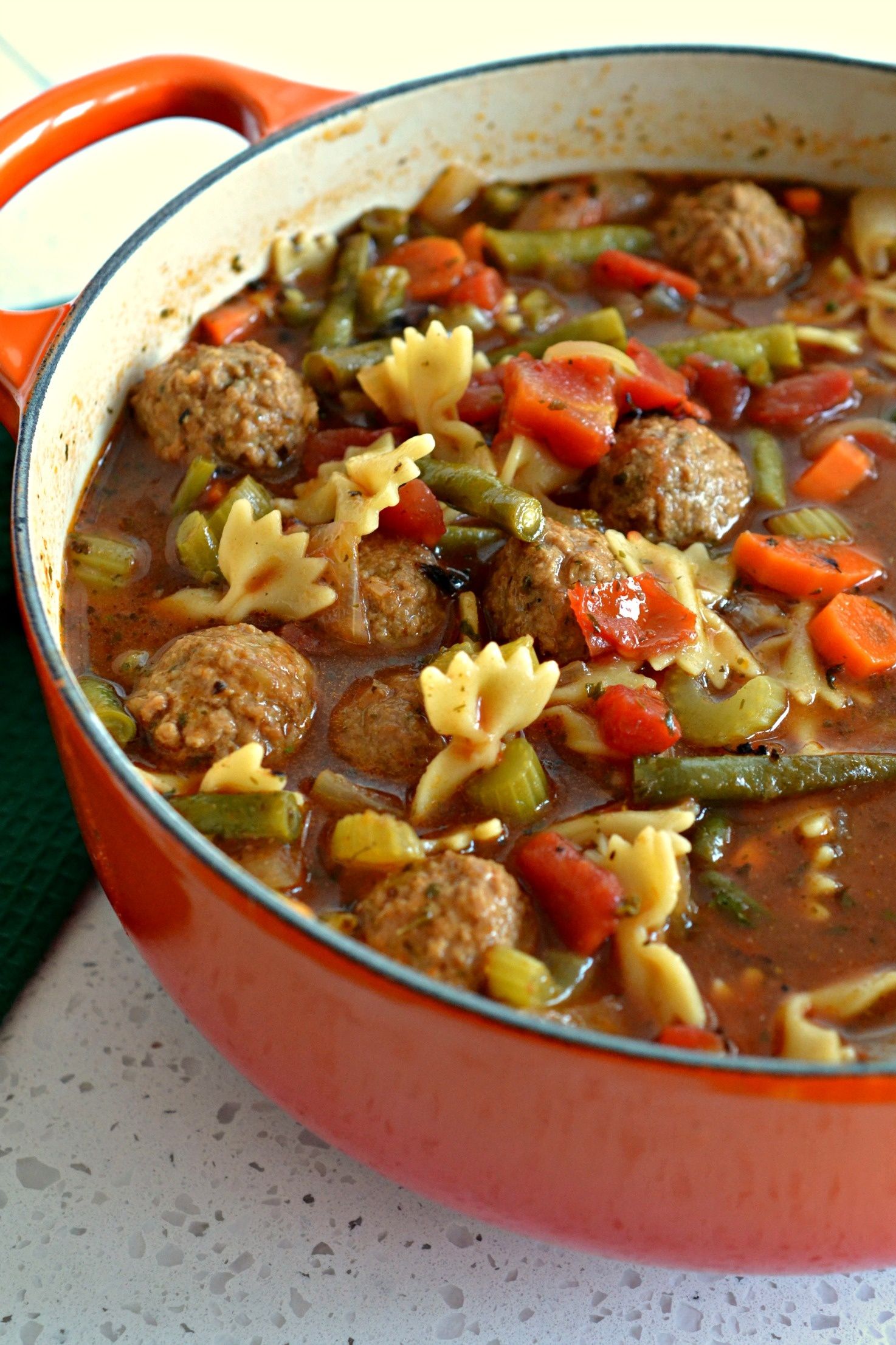 This family friendly tasty Meatball Soup is a cinch to make using frozen or fresh meatballs and a handful of fresh cut vegetables. It is lightly seasoned with Italian spices in a tasty beefy tomato broth. This soup is a complete meal by itself but is also delicious served with Best Cornbread Recipe or Easy Sweet Maple Dinner Rolls.