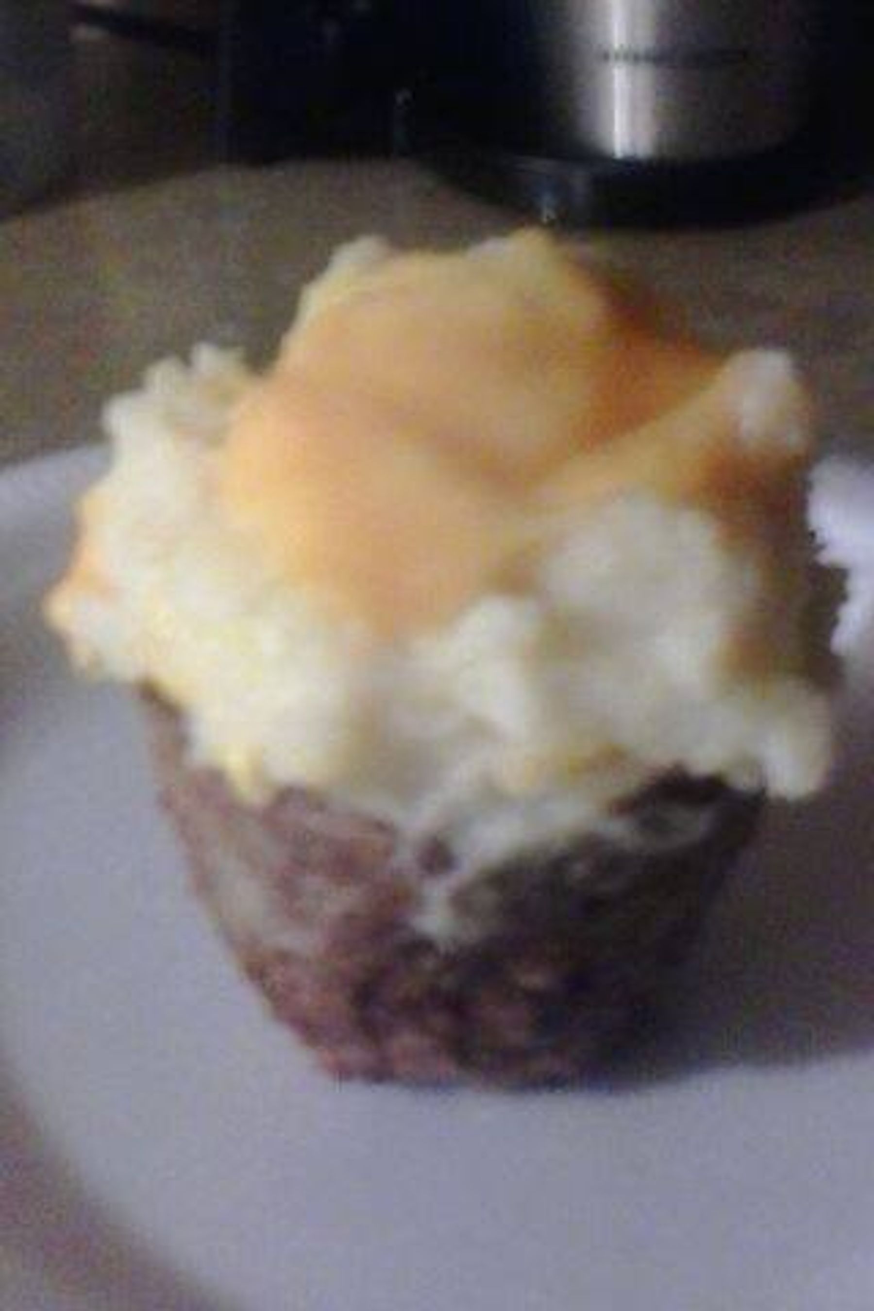 Remove meatloaf cupcake from liner and absorb excess grease with a paper towel