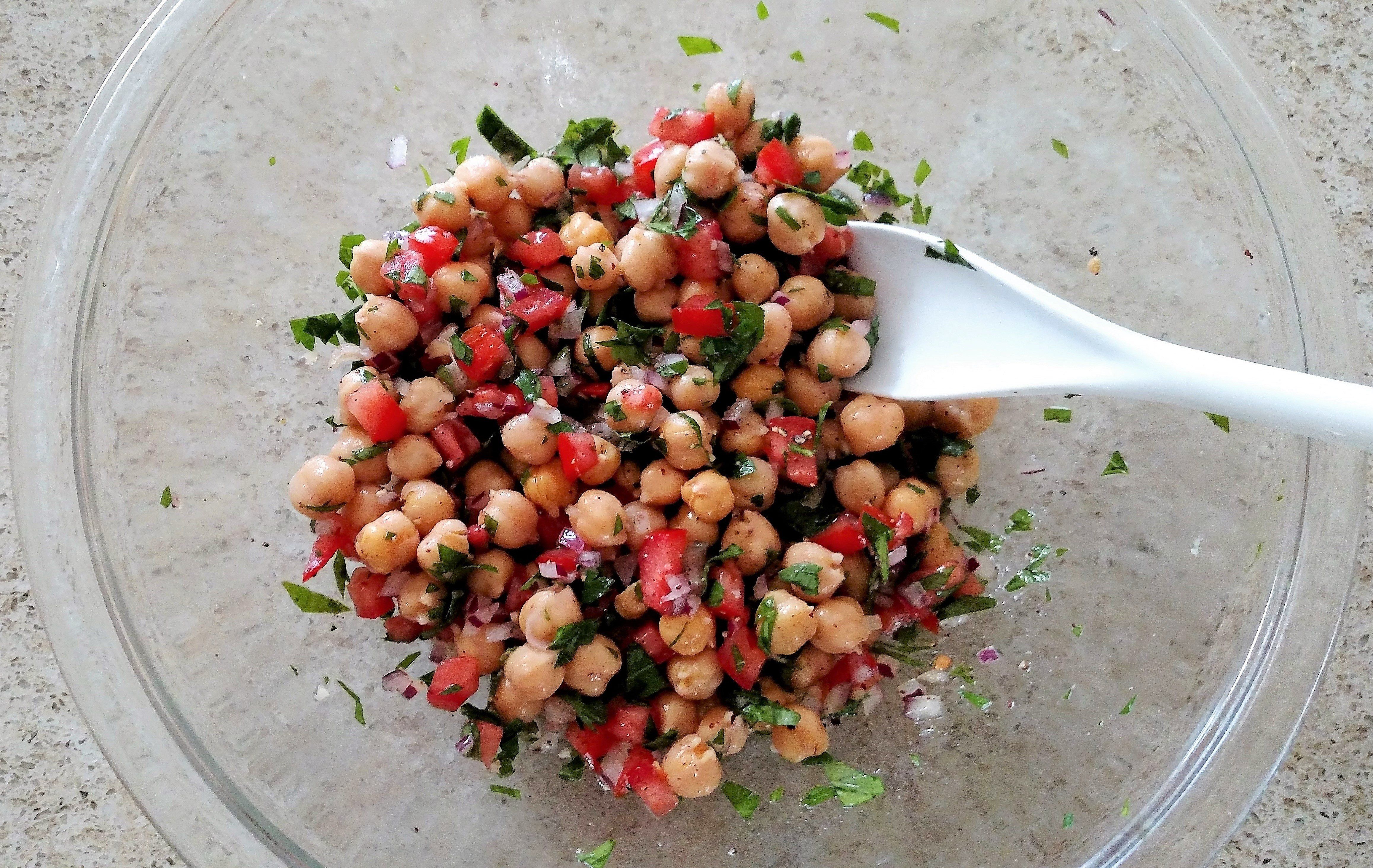 Mediterranean Balela Salad is a wonderful chickpea salad made with tons of fresh flavors like parsley, onion, tomato, garlic, and fresh lemon juice.