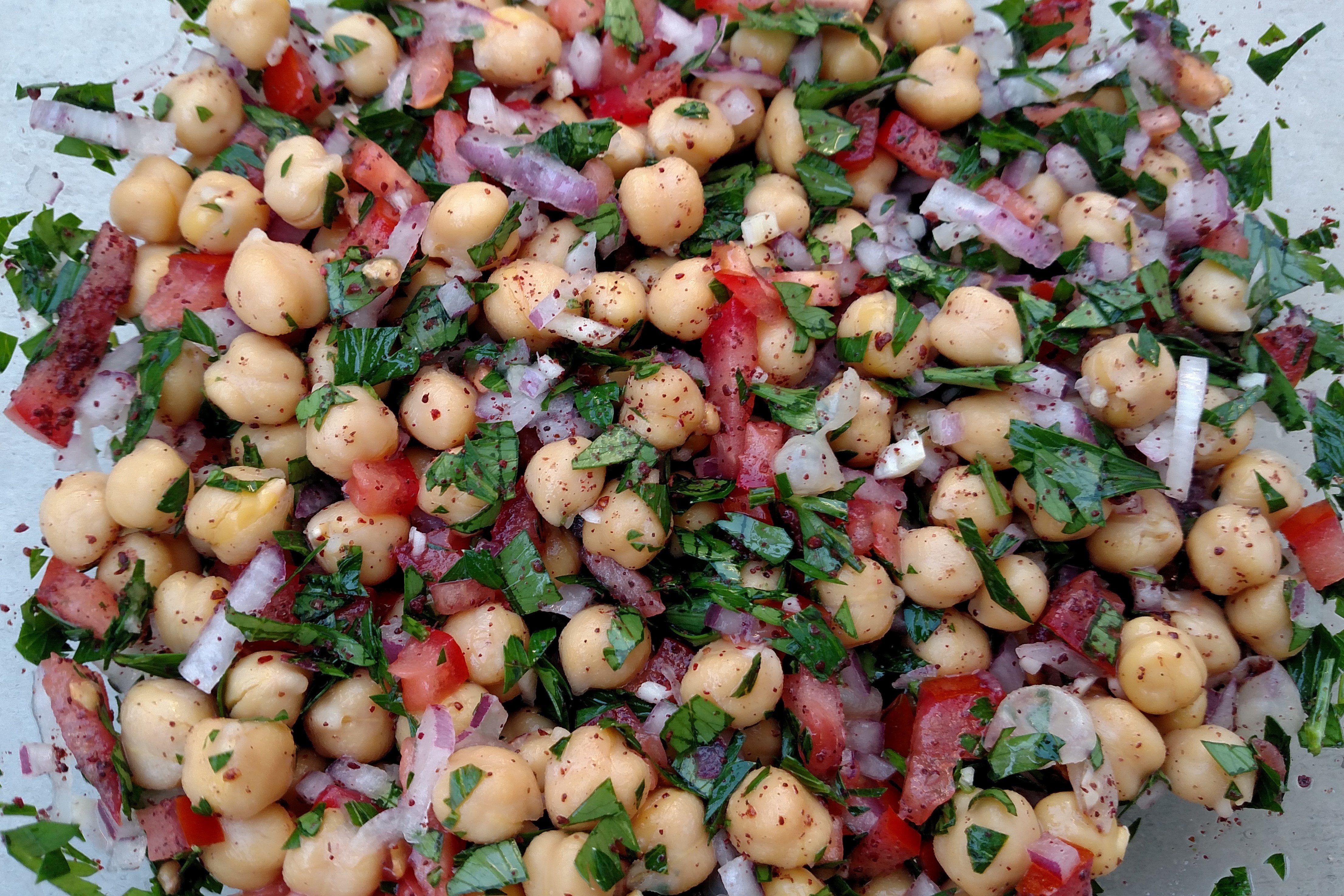 Mediterranean Balela Salad is a bright and healthy chickpea salad made with tons of fresh flavors like parsley, onion, tomato, garlic, and fresh lemon juice. It's a wonderful, light side dish or a tasty vegetarian meal alongside hummus and pita bread.