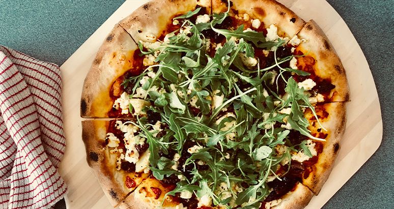Create a delicious, homemade Mediterranean pizza with Wagyu sausage. After preparing your dough, top with crushed tomatoes, cooked Wagyu sausage, artichoke hearts, sun-dried tomatoes, minced garlic, olives, feta cheese, grated parmesan cheese, and olive oil. Next time you are thinking of a date night idea, make homemade pizzas using this recipe!