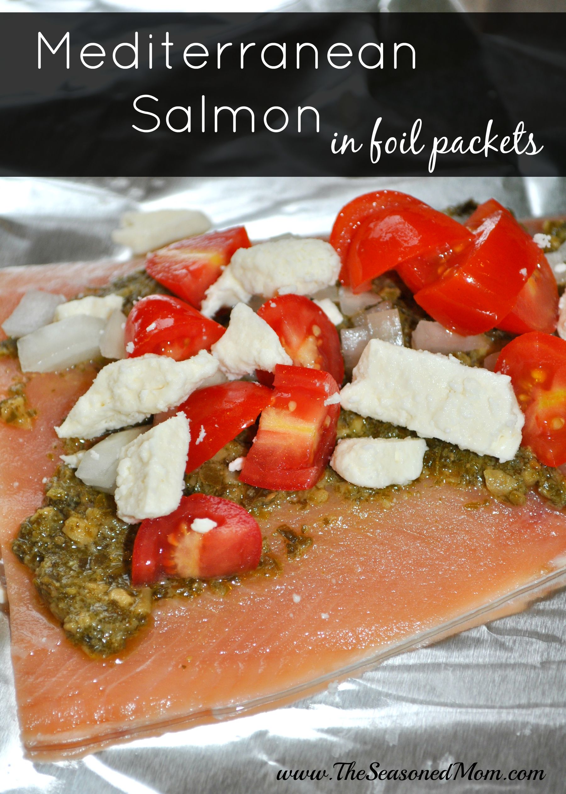 Place each salmon fillet on top of a piece of aluminum foil. Top each fillet with 2 T. pesto, ¼ c. of onion, ¼ of the...
