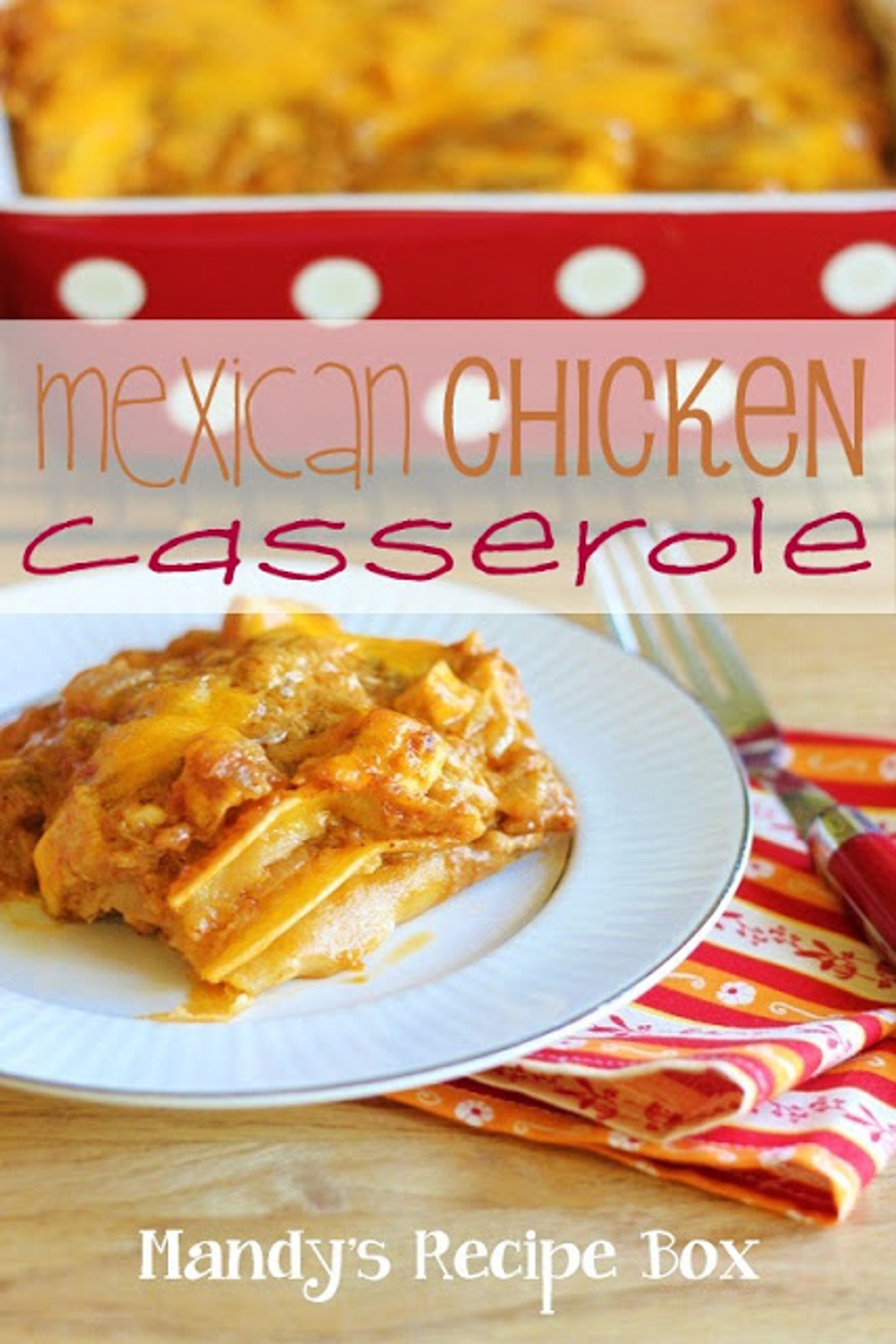 A layered casserole of tortillas and chicken with a Mexican flare.