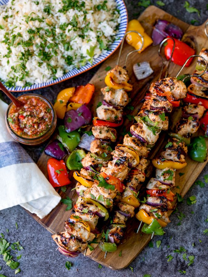 Mexican Chicken Skewers with Rice and Picante Salsa - perfect for Cinco De Mayo or any Friday night dinner! Gluten Free too!