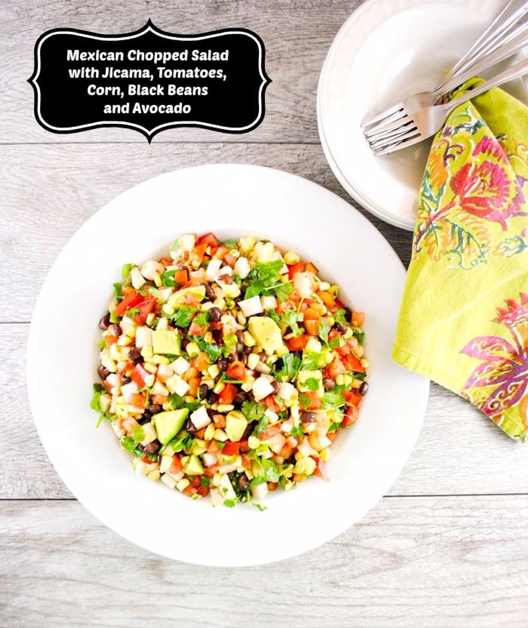 Mexican Chopped Salad with Jicama, Tomatoes, Corn, Black Beans and Avocado