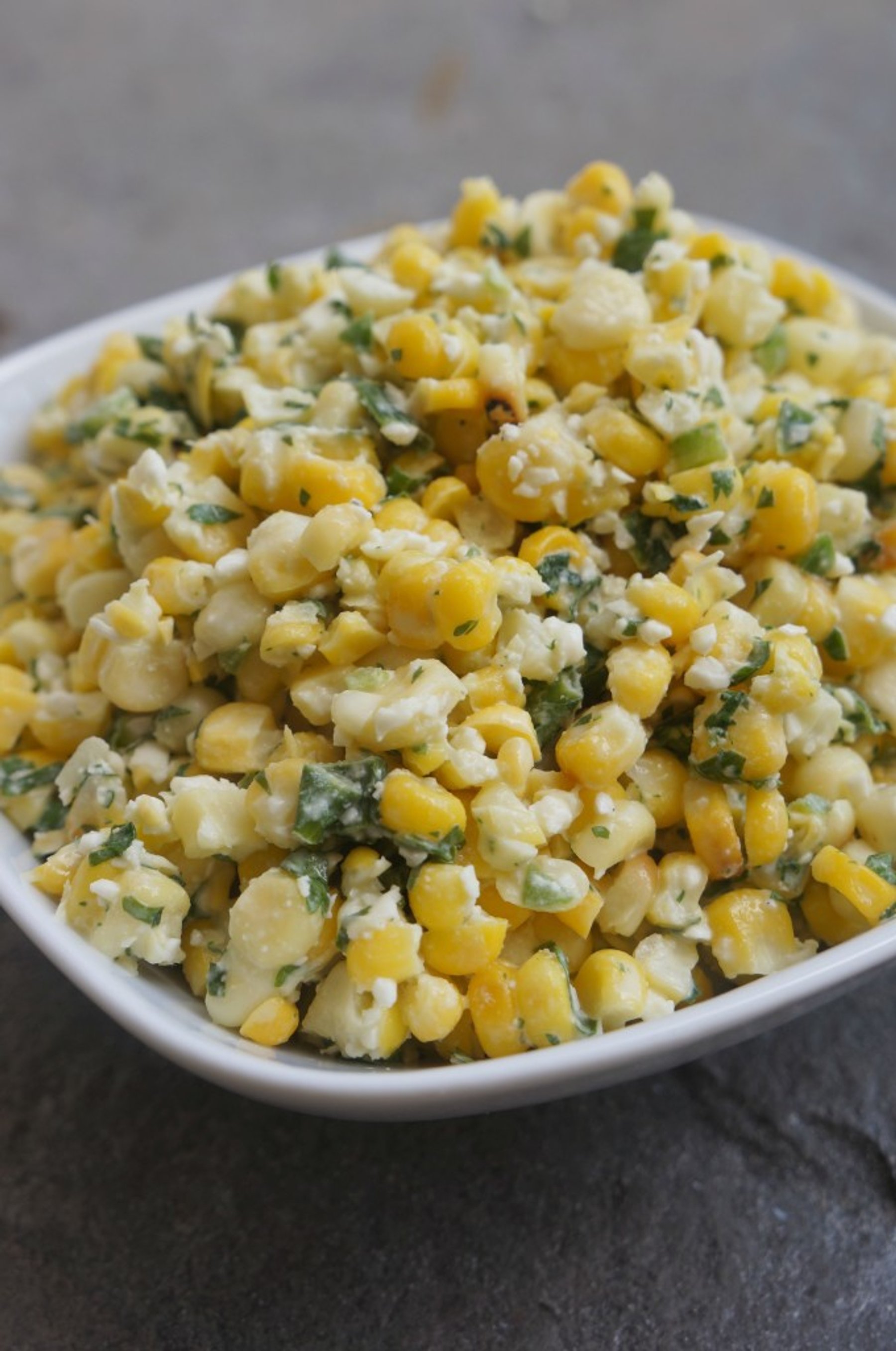 To the bowl with the corn, add mayo, cotija cheese, scallion greens,...