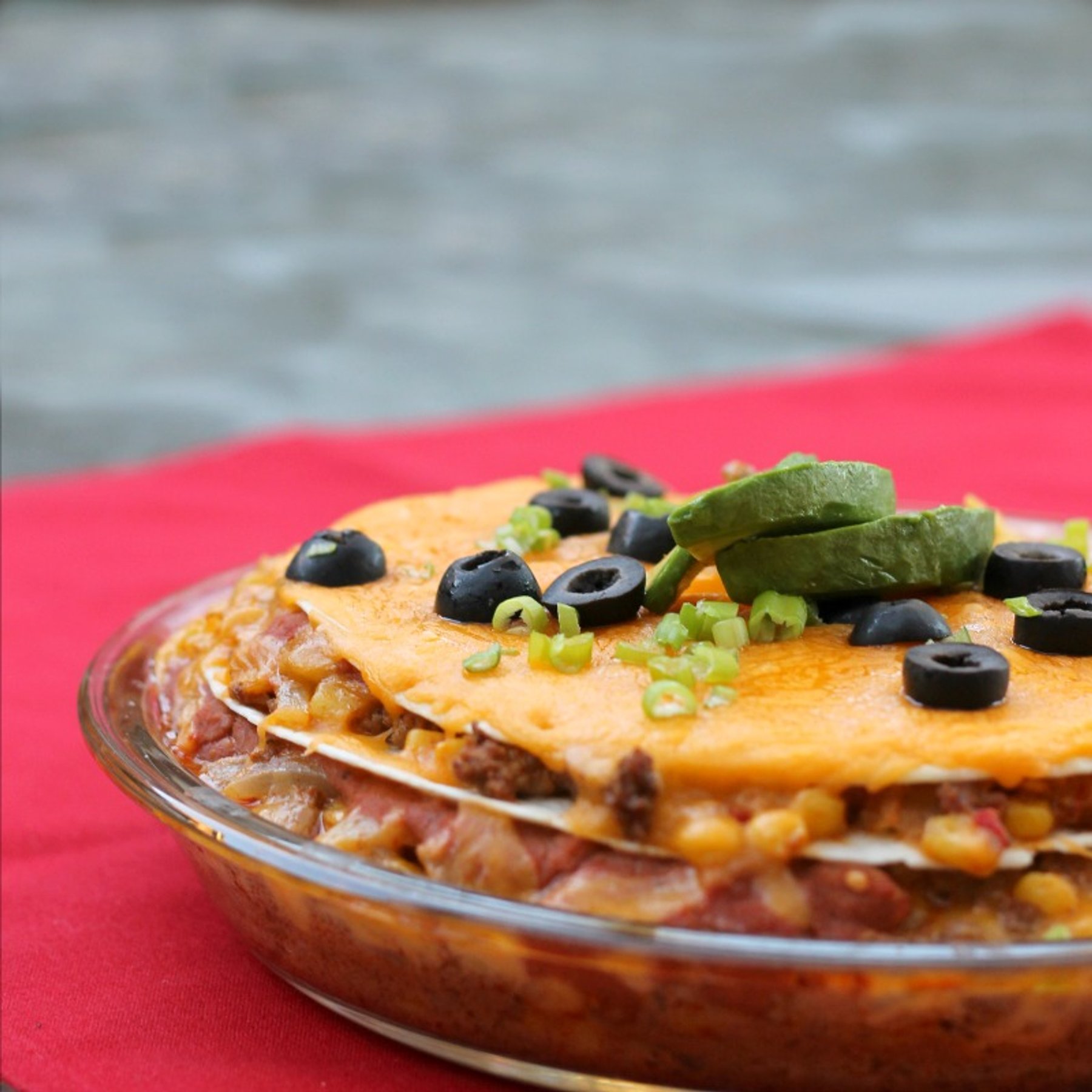 Any food that can be categorized as “Mexican” is my favorite. When I saw this Mexican Pie over on Hungry Couple NYC, it sounded easy and delicious. I made a few changes to fit our family’s tastes and this was the result.