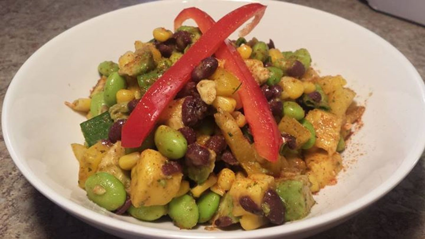 A raw and vegan recipe with a purpose. This salad filled with delicious vegetables and fruit is perfect for any hot summer day. Your taste buds will be hot instead of you!
