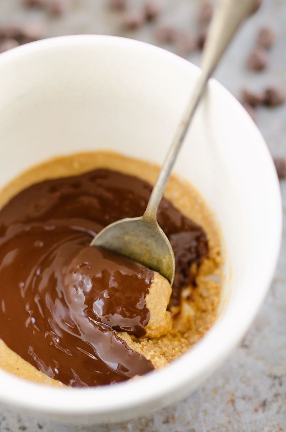 This delicious Microwave Peanut Butter Cup Mug is an individual dessert that is rich and chocolaty, and takes less than 5 minutes to make! Combining creamy peanut butter, dark chocolate chips, butter and graham crackers, this decadent 5 ingredient dessert is sure to satisfy your sweet tooth!