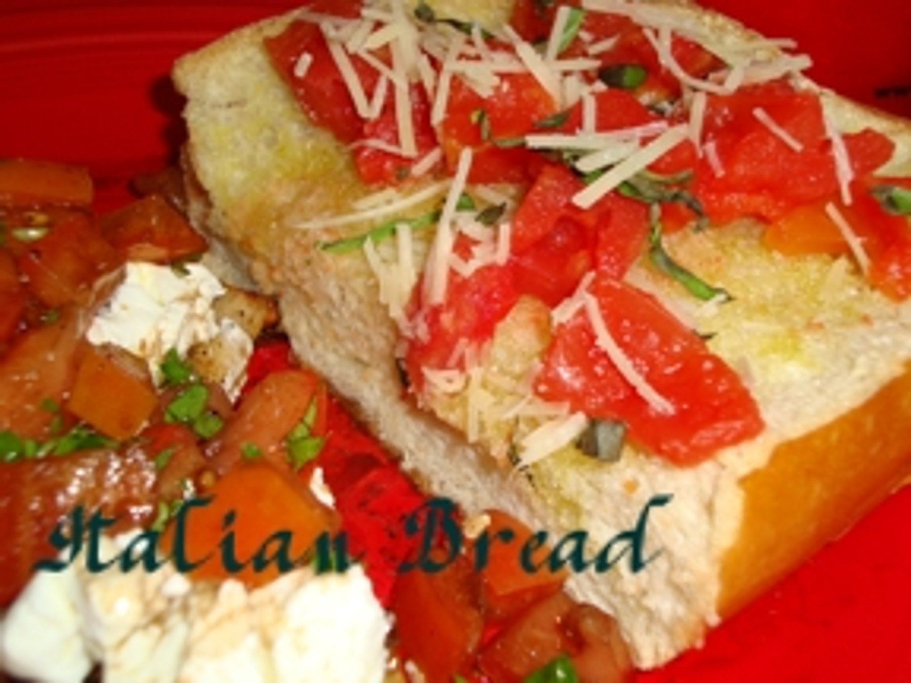 Slice bread in half horizontally. Brush with olive oil. Bake at 350 degrees F until almost crisp. Top with tomatoes and basil. Bake for 1-2 minutes more until tomatoes are heated through. Sprinkle...