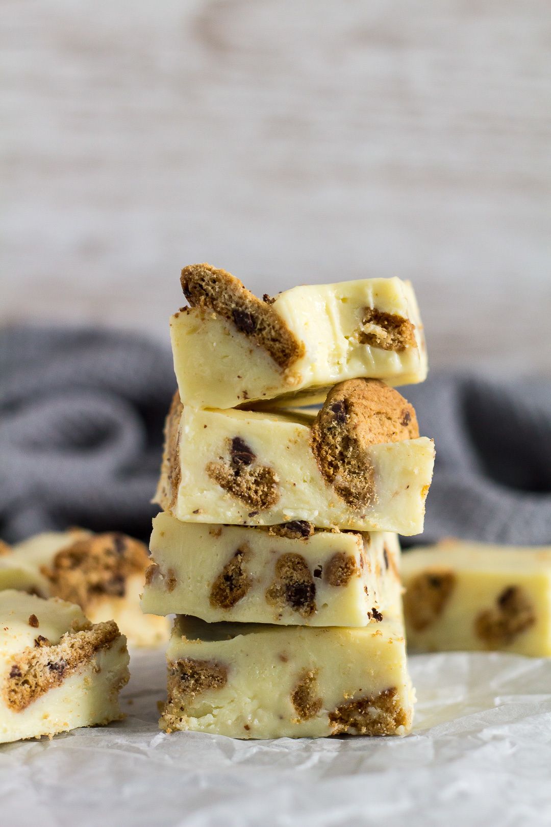 Incredibly creamy and fudgy white chocolate fudge loaded with mini chocolate chip cookies. Only 4 ingredients, and is made in the microwave!