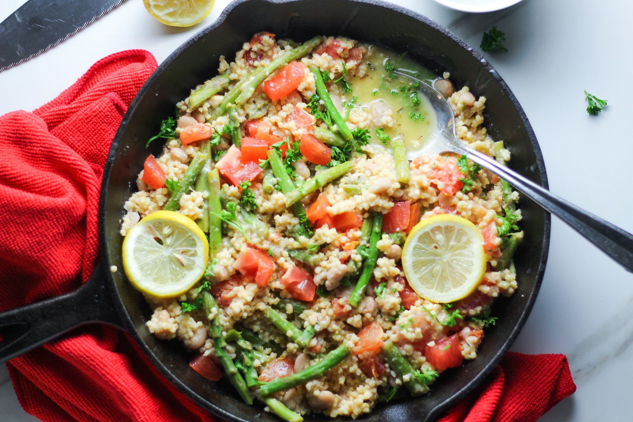 Millet Rice with Asparagus and Lemon Butter Sauce