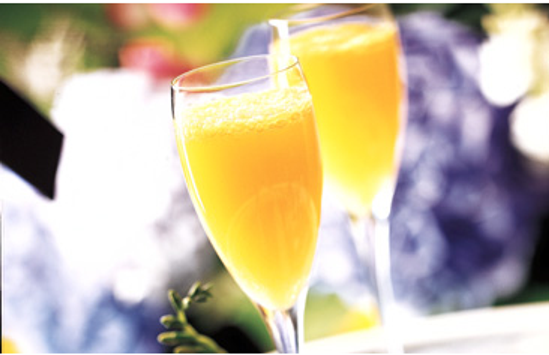 Pour the champagne up to half of each glass. Fill the other half of mixture of juice.