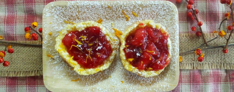Place cut cranberries, diced apples, the juice and zest of the orange, cinnamon, cinnamon stick, water and sugar in a pot and place on the stove top on medium heat. Allow to come to a...