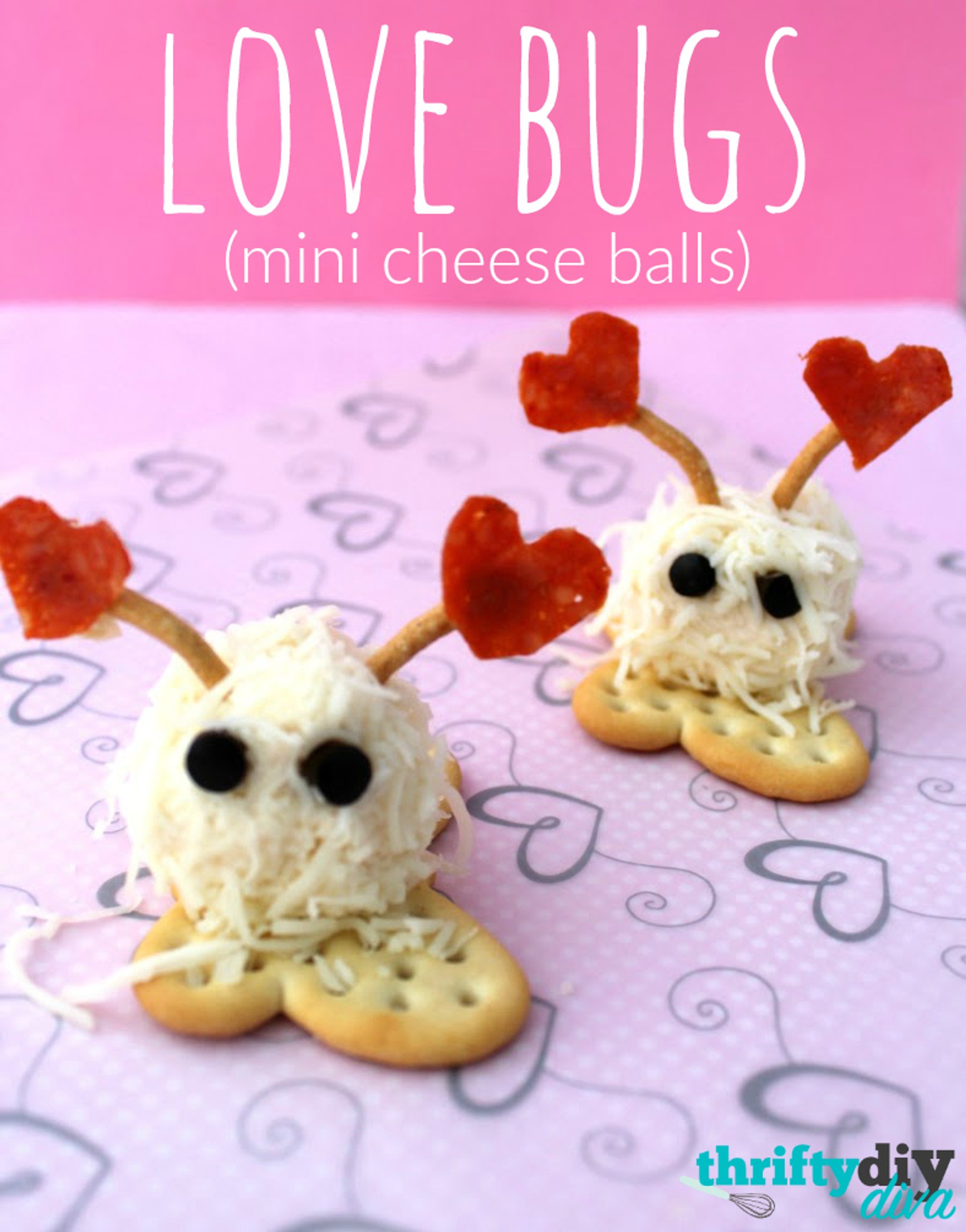 These Mini Cheese Ball Love Bugs are perfect for your kids Valentine\\\'s Day class party, or just for a cute snack at home to celebrate!