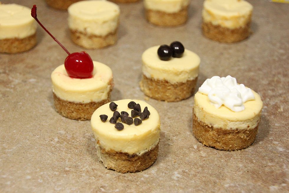 These Mini-Cheesecakes are a fun bite-size dessert that are perfect for large groups, as each one can be individually customized with toppings.