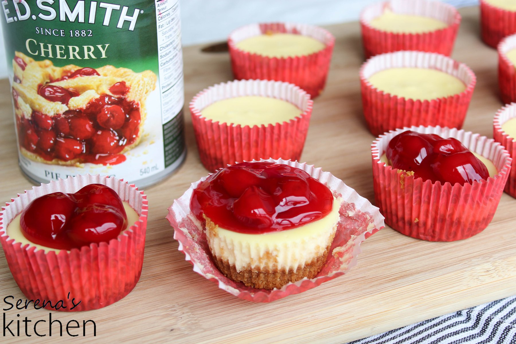 Super creamy and smooth cheesecake on a graham crust, with cherry topping . Easy to make, and so cute in little mini size!