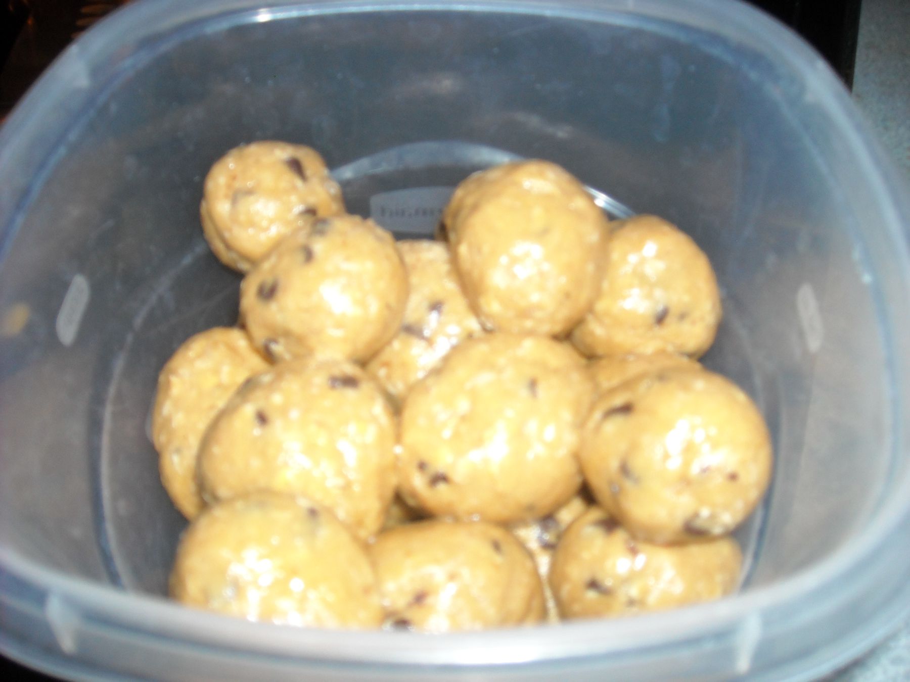 Protein packed snacks with peanut butter and mini chocolate chips!