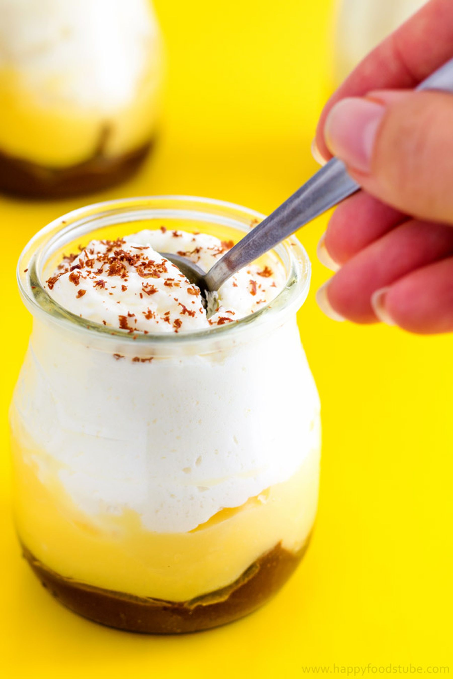 A combination of thick sweet chocolate caramel, citrusy Lemon Curd with whipped cream is a dream come true dessert!