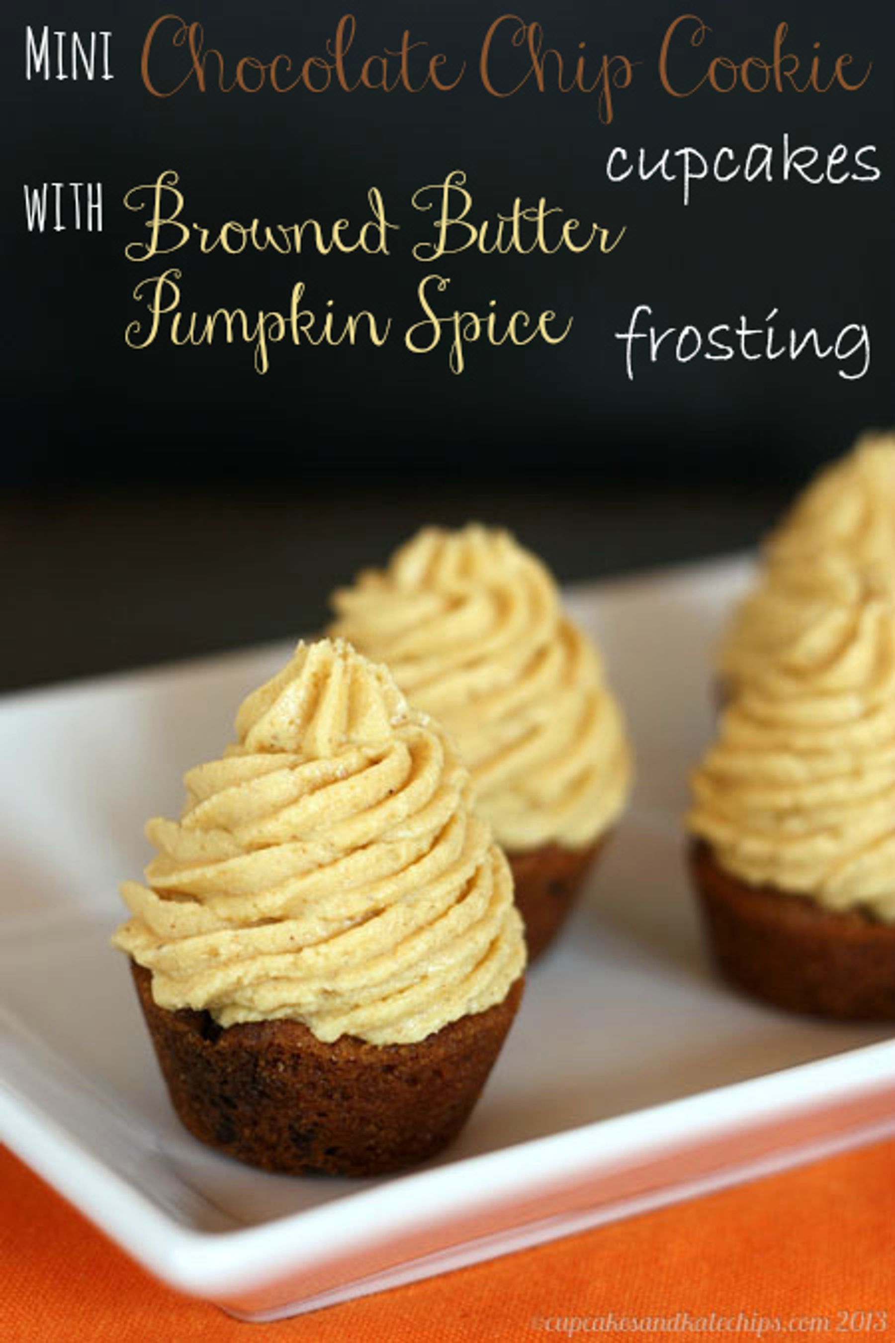 Mini Chocolate Chip Cookie Cupcakes with Browned Butter Pumpkin Spice Frosting