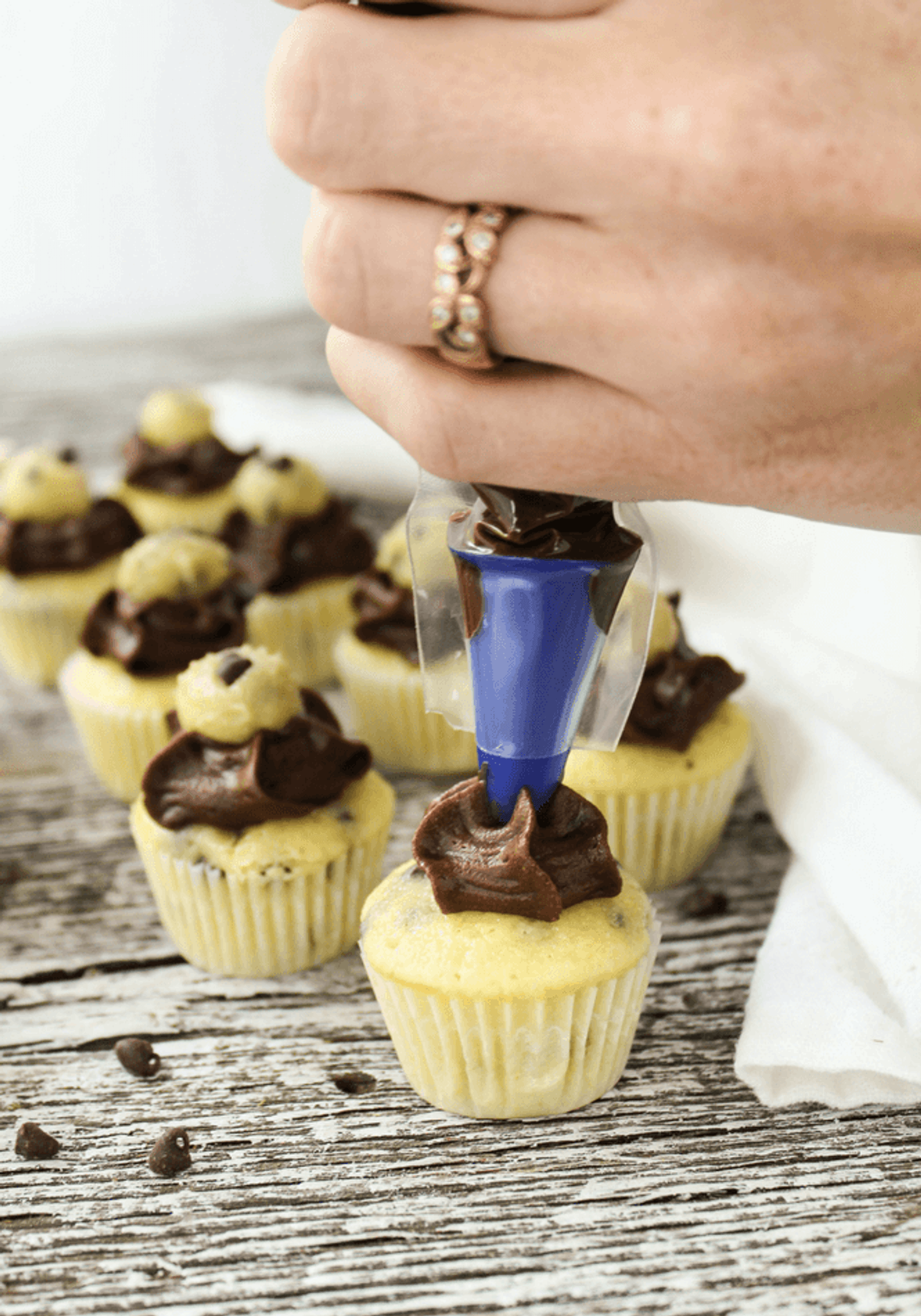 Mini Chocolate Chip Cupcakes with Edible Cookie Dough