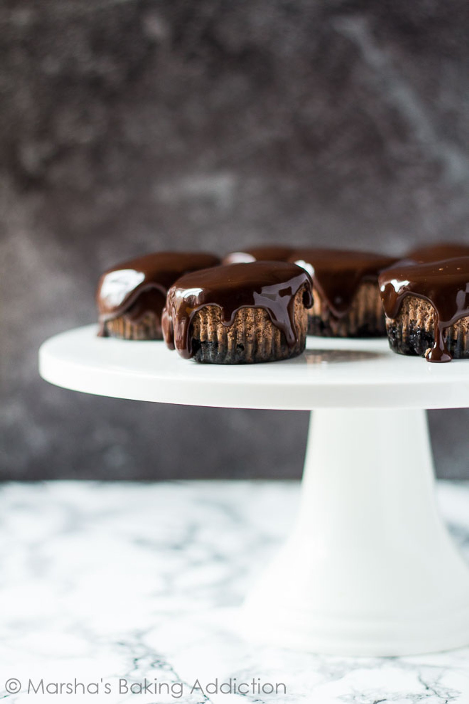 Mini chocolate cheesecakes infused with orange and topped with a dark chocolate orange ganache!
