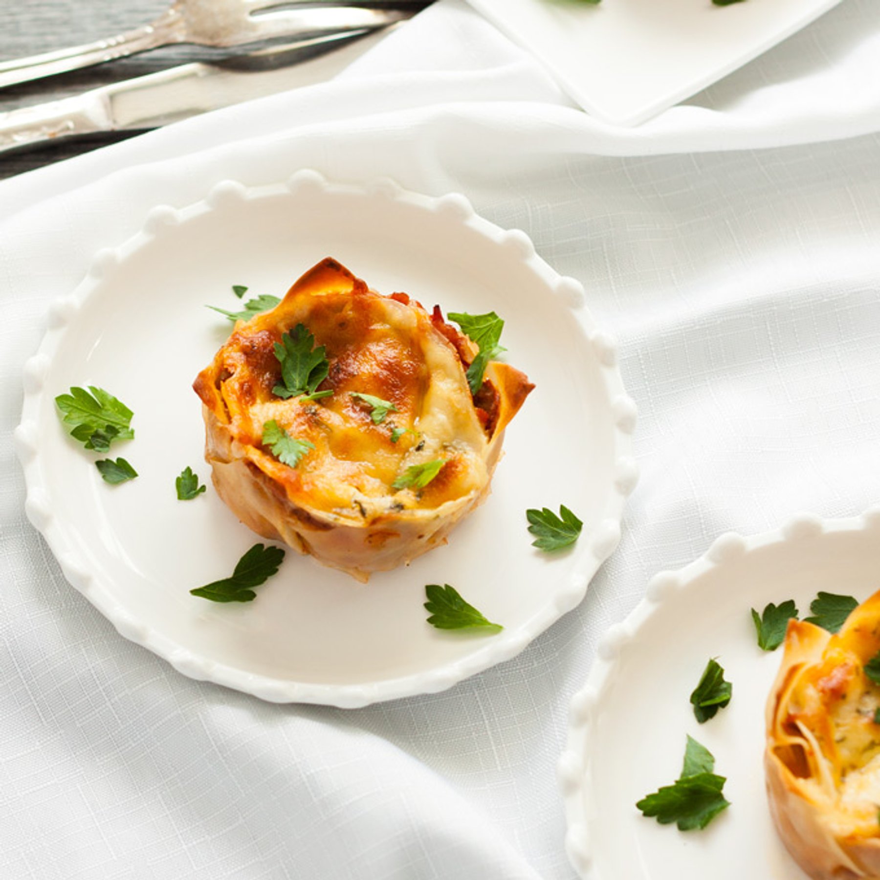 Mini Lasagna Cupcakes - simple mini lasagnas made in a muffin tin, using wonton wrappers! Perfect for entertaining. By Sugar Salt Magic