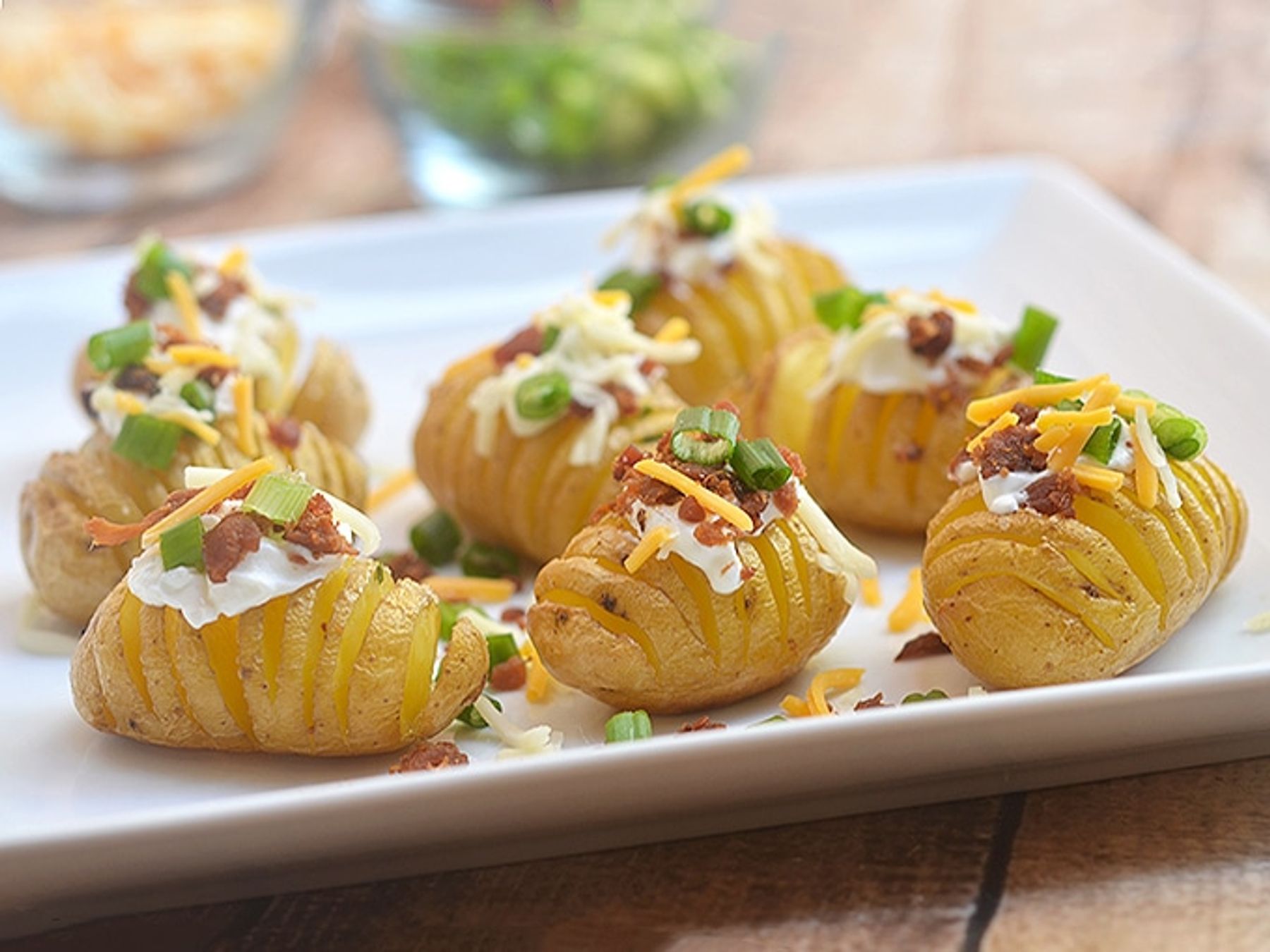 Mini Loaded Hasselback Potatoes - Onion Rings & Things