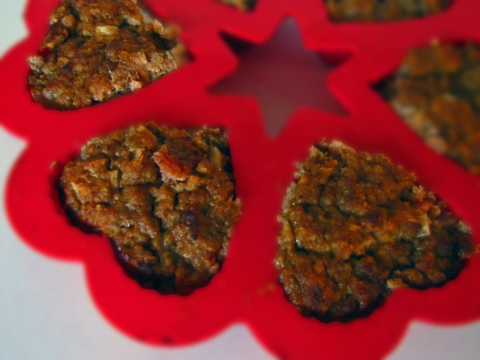Mini meatloafs made with ground turkey, crumbled bacon, and panko bread crumbs