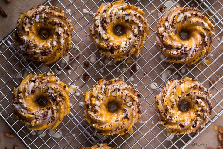 Mini Pumpkin Pecan Cakes are delicious mini bundt cakes and spongy doughnuts packed with crunchy pecan bites and a wonderfully sweet orange glaze. They make the perfect dessert or a glorious morning breakfast that you will want to make and eat all year round.
