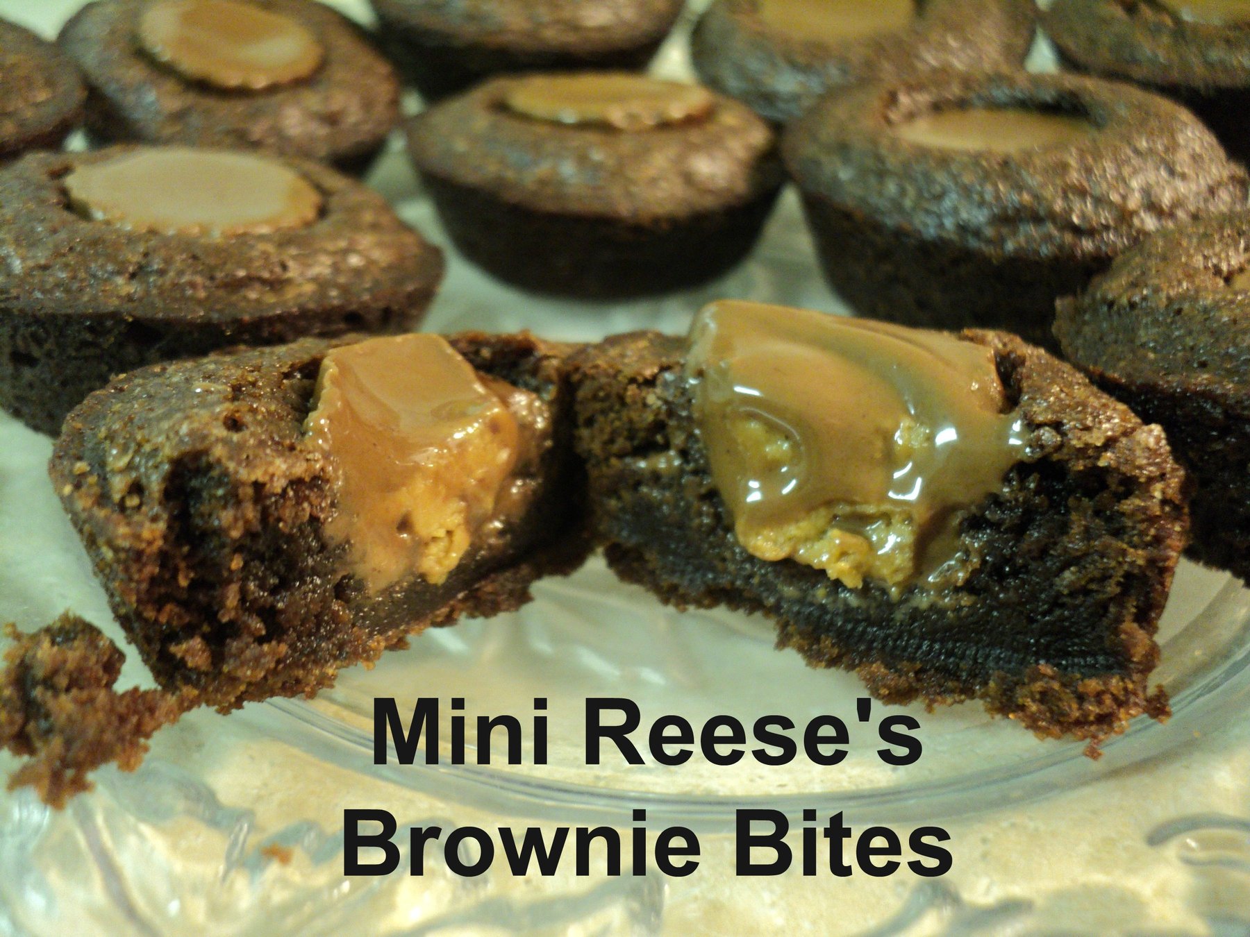 Remove from oven and immediately push 1 mini peanut butter cup into the middle of eat brownie bite. Let cool completely, then remove from pan.