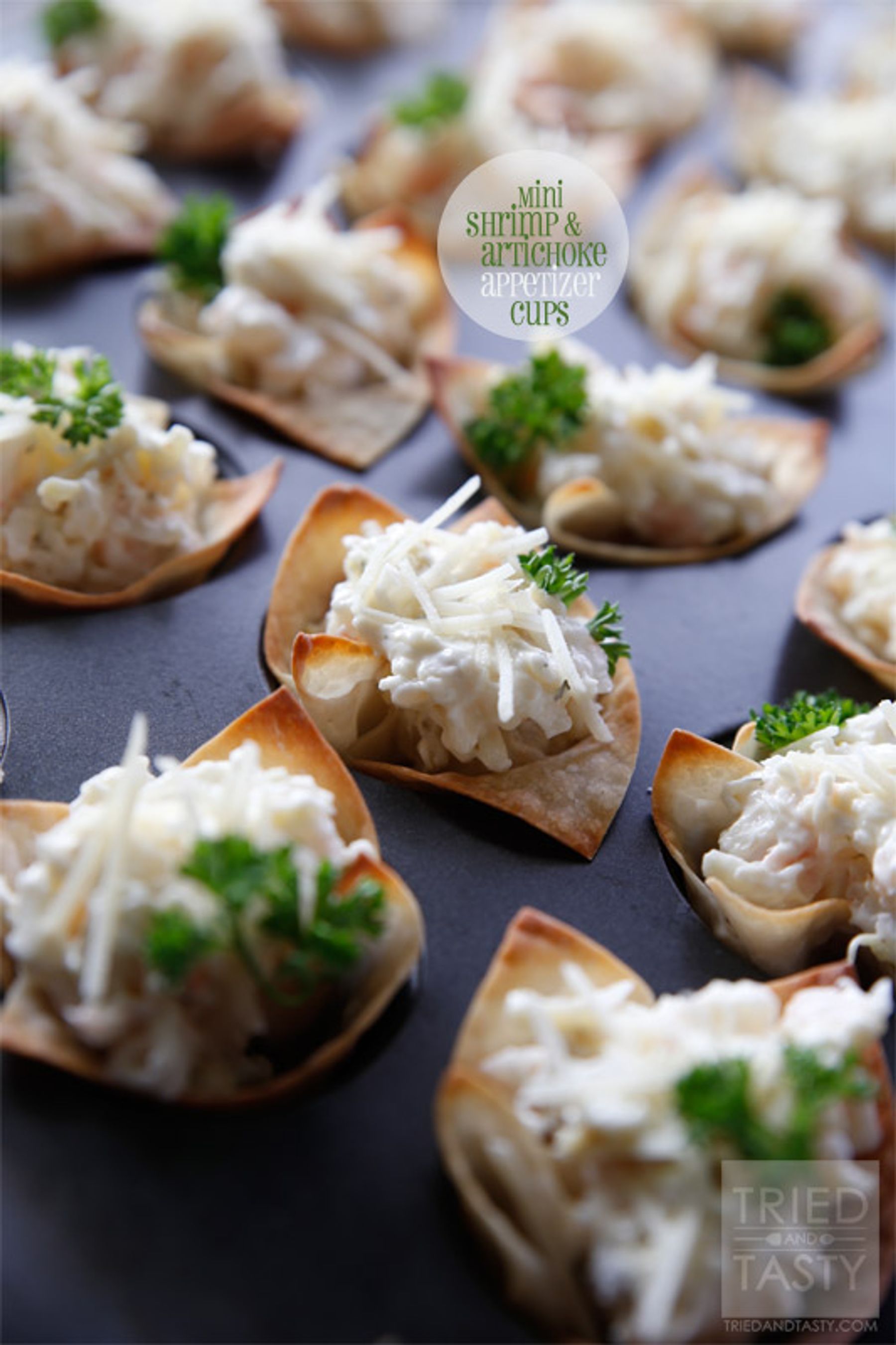 Preheat oven to 350. Spray mini muffin pan with cooking spray & place 1 wonton wrapper in each cup. Bake 6-8 minutes until golden brown. Remove from oven; cool. In a medium sized bowl, combine diced shrimp...