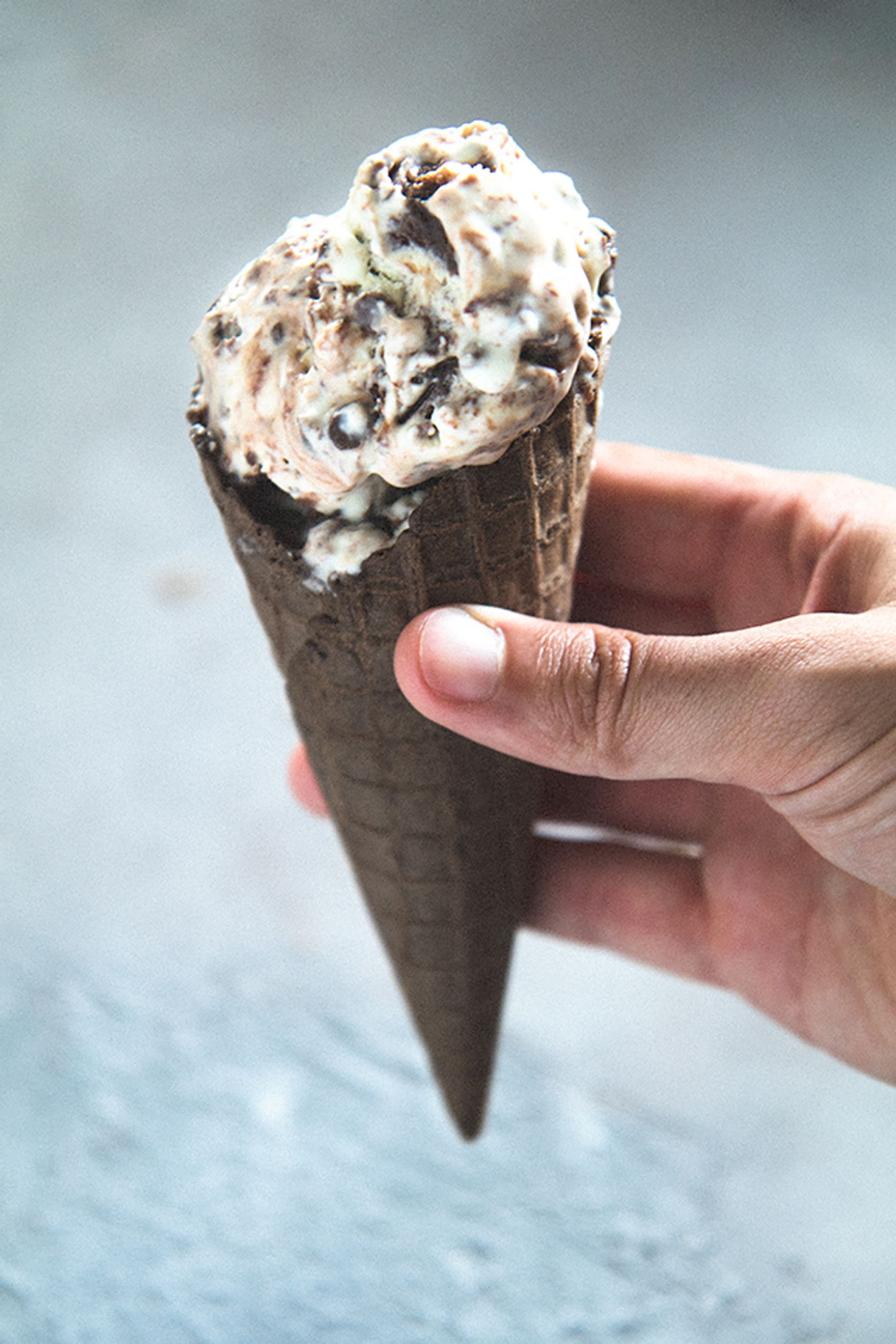 This ice cream begins with a creamy, refreshing mint base and is then filled with fudgy brownie chunks (2 cups worth!!), mini chocolate chips for crunch, and a fudge swirl to finish. So refreshing, chocolaty, and perfect for summer!