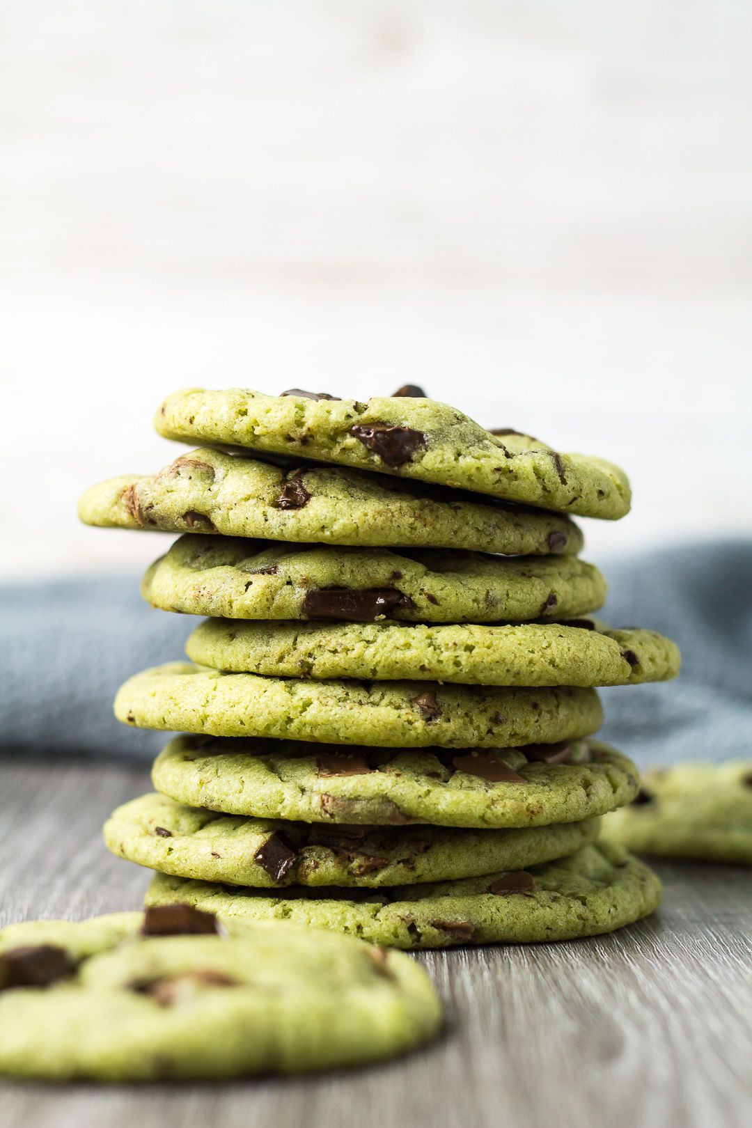 Deliciously soft and chewy peppermint-infused cookies that are loaded with chocolate chips and coloured a minty green!