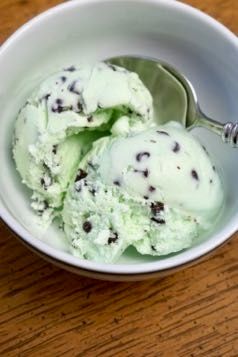 Delicious and creamy homemade mint chocolate chip ice cream.