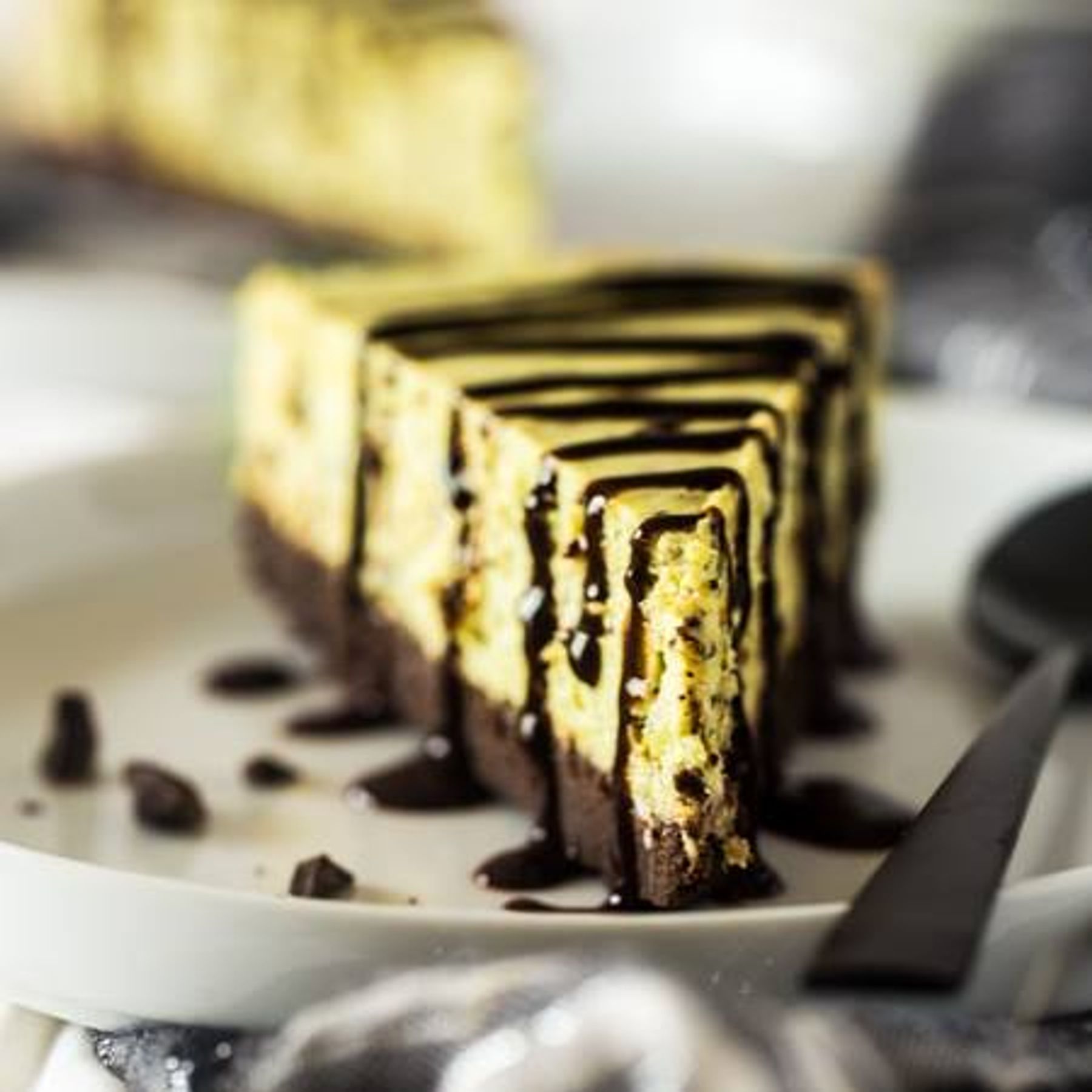 Mint Gluten Free Cheesecake with Brownie Bottom