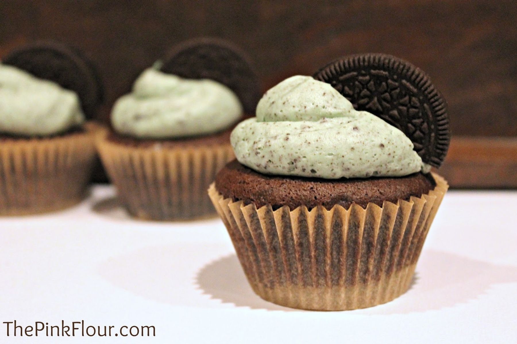 Moist chocolate cake with an Oreo hidden inside topped with a cool mint buttercream.