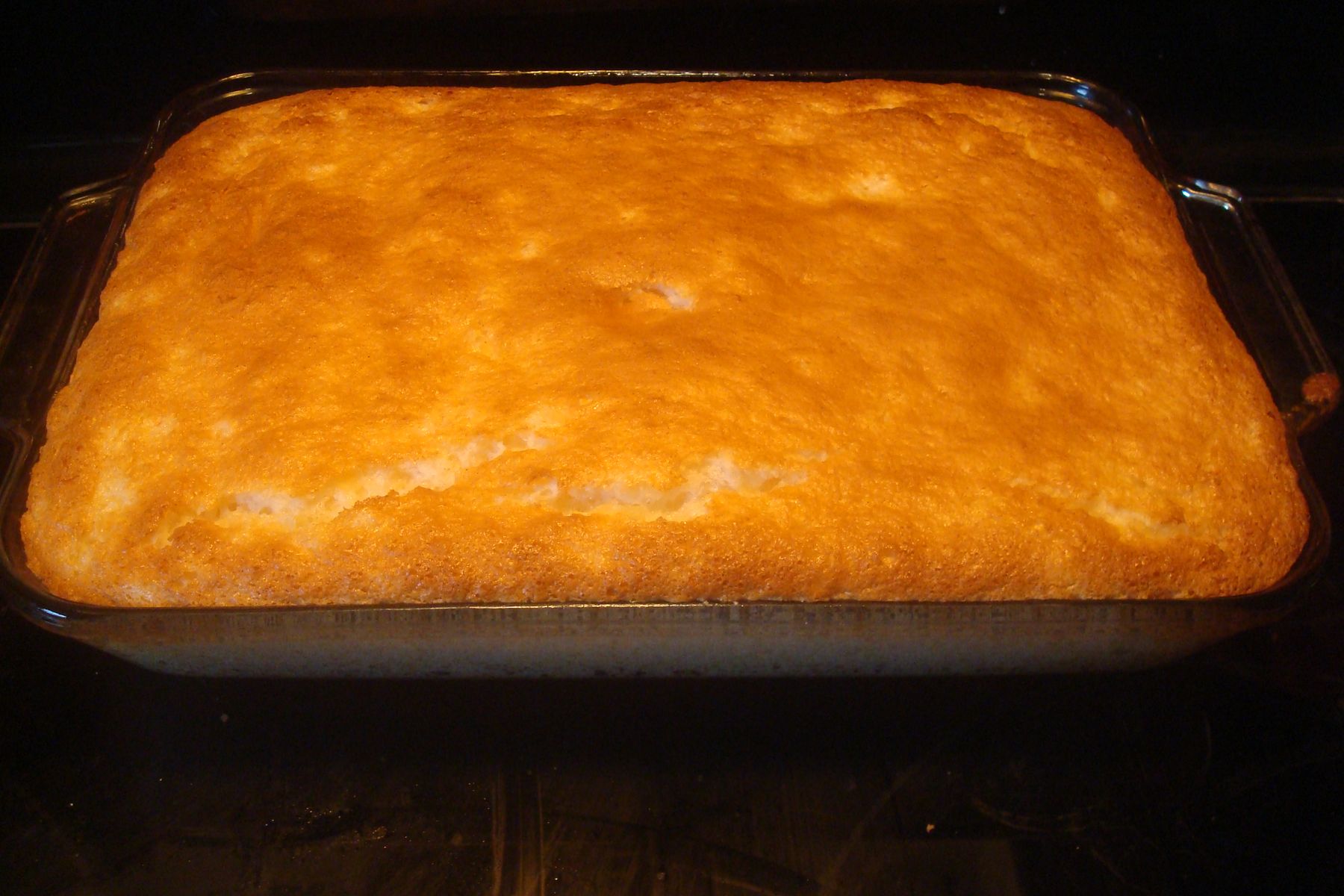 This pineapple angel food cake is quick, easy and fun to make, as well as being moist and fruity. Did I mention there are just two ingredients, folks? Yeah, buddy!! The first time I made this was to share with kinfolks, and everyone from my Nana to my three year old loved it. My toddler loved helping me stir it up, since the batter does this interesting fizzy fluffing thing she found absolutely fascinating. You've got to try this cake!!