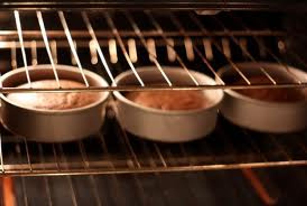 3. Bake 30 to 35 minutes in the preheated oven, until the cake tests done with a toothpick. Cool in the pans for 10 minutes, then remove to a wire rack to cool completely.