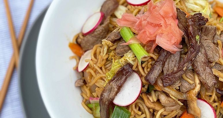 This Japanese noodle stir-fry dish is elevated by the melts-in-your-mouth Miyazakigyu Wagyu strip steak. If you're looking for a delicious, easy-to-make meal that the will impress the most seasoned palate, we recommend Yakisoba!