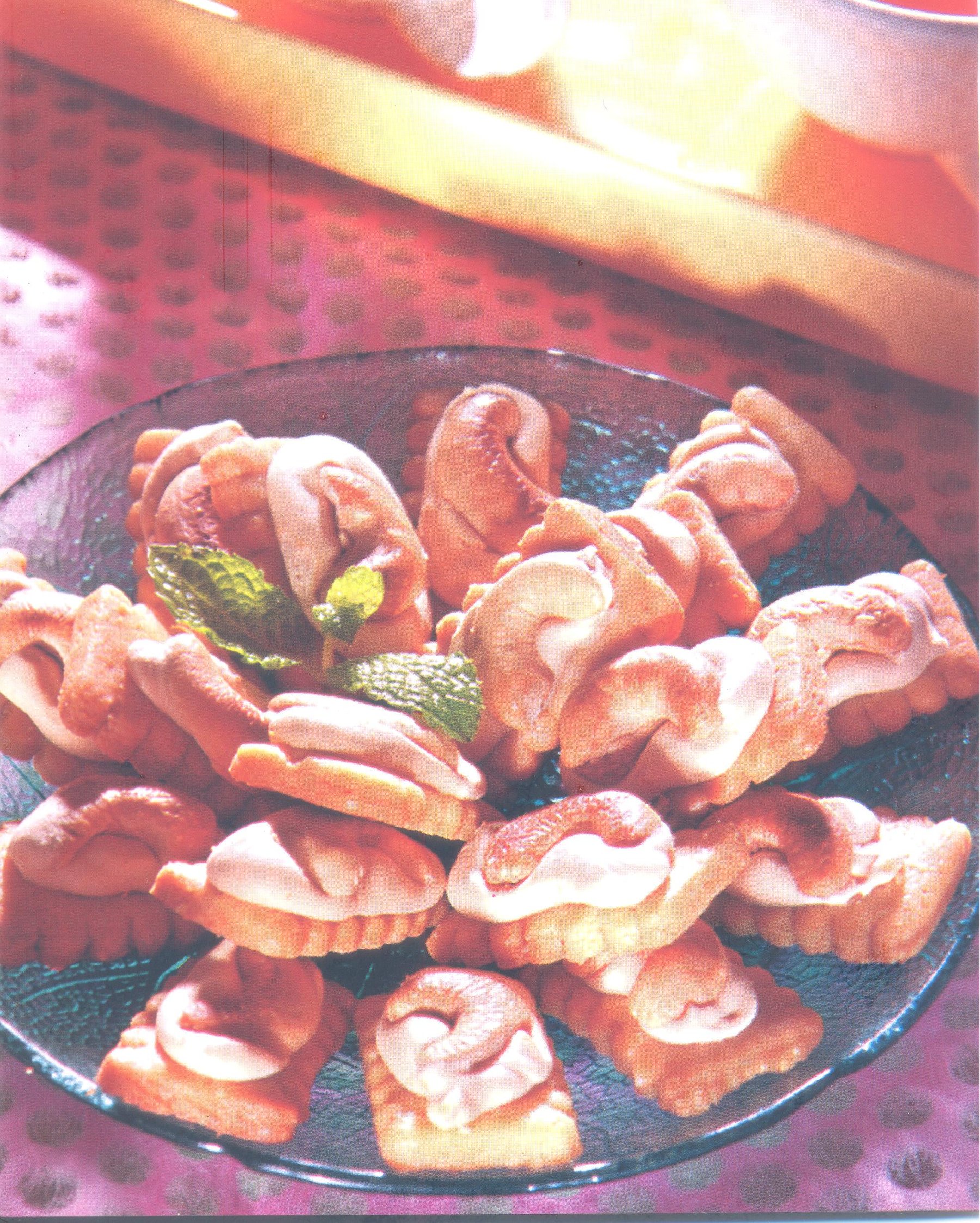 D. 250 grams of ripe cashew nuts , halved for garnish .