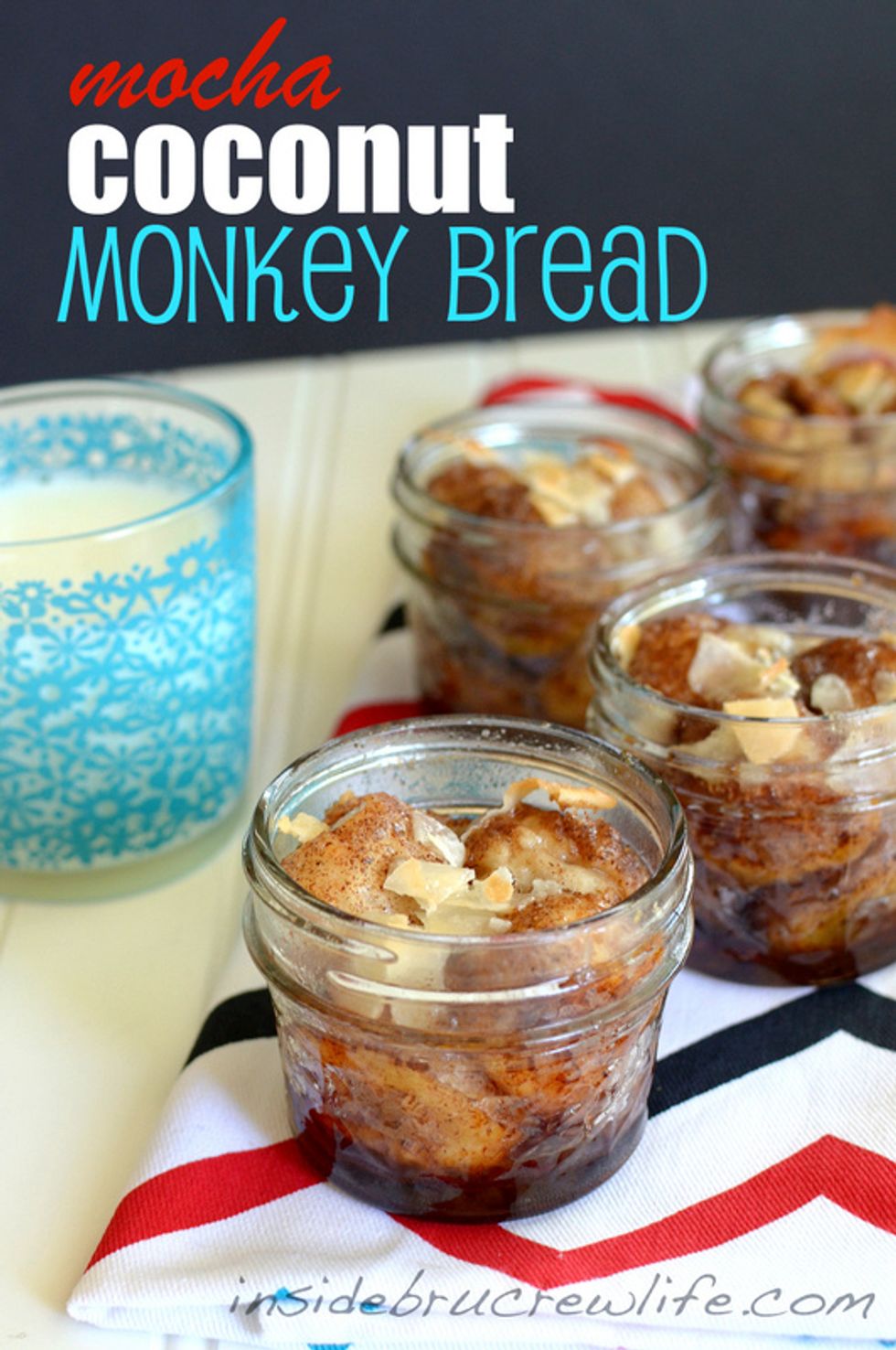 Biscuits rolled in sugar and cinnamon, filled with Mocha spread, and drizzled with cream of coconut