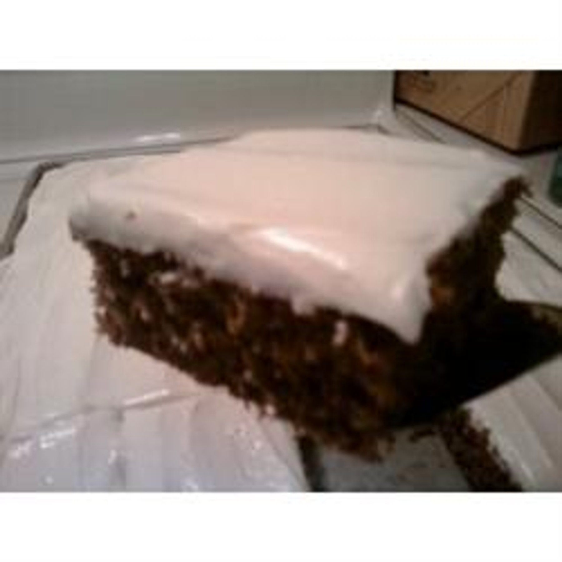 Cool and frost with cream cheese icing and then cut into bars before removing from the pan.