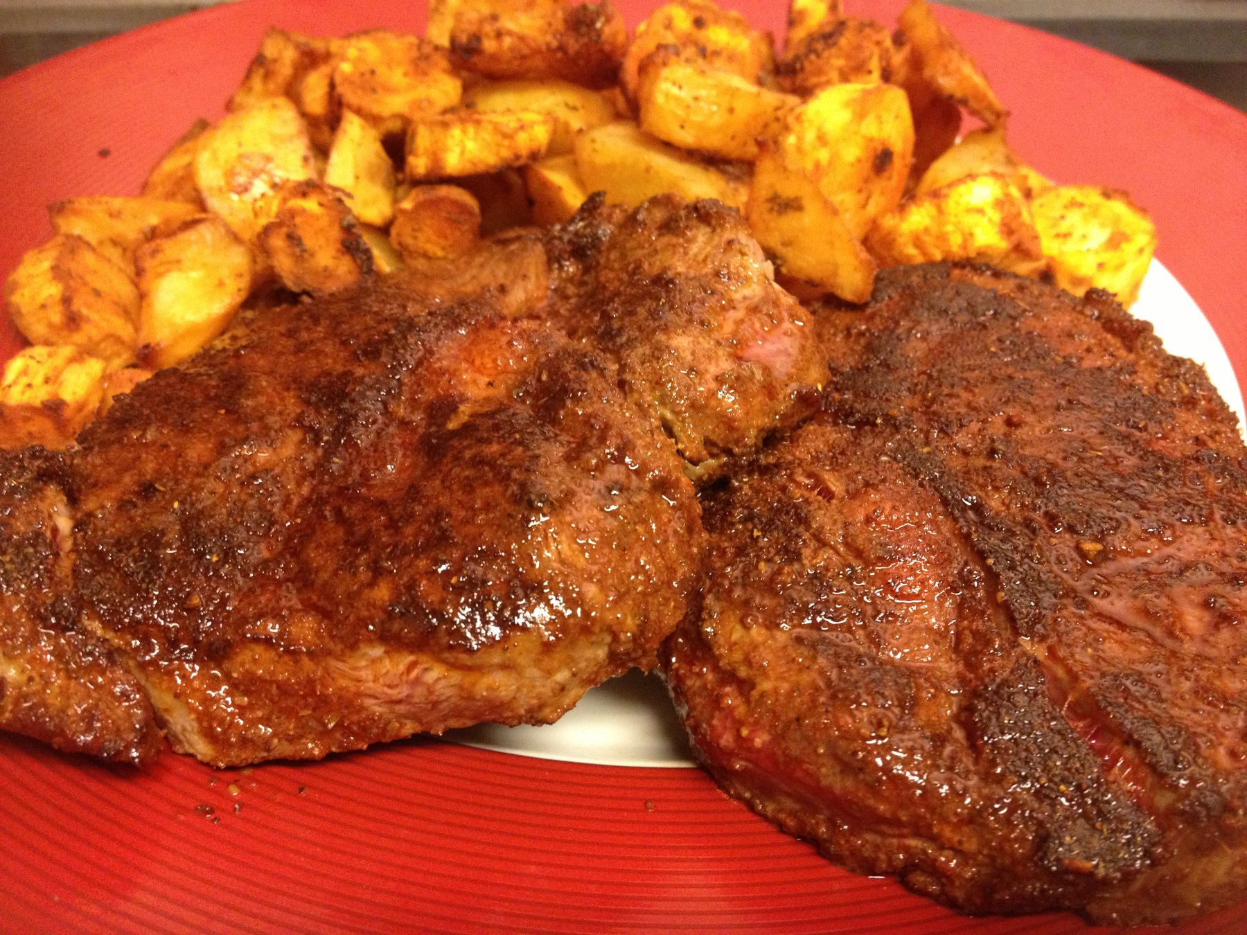Rub the steaks on both sides with the spice mixture.