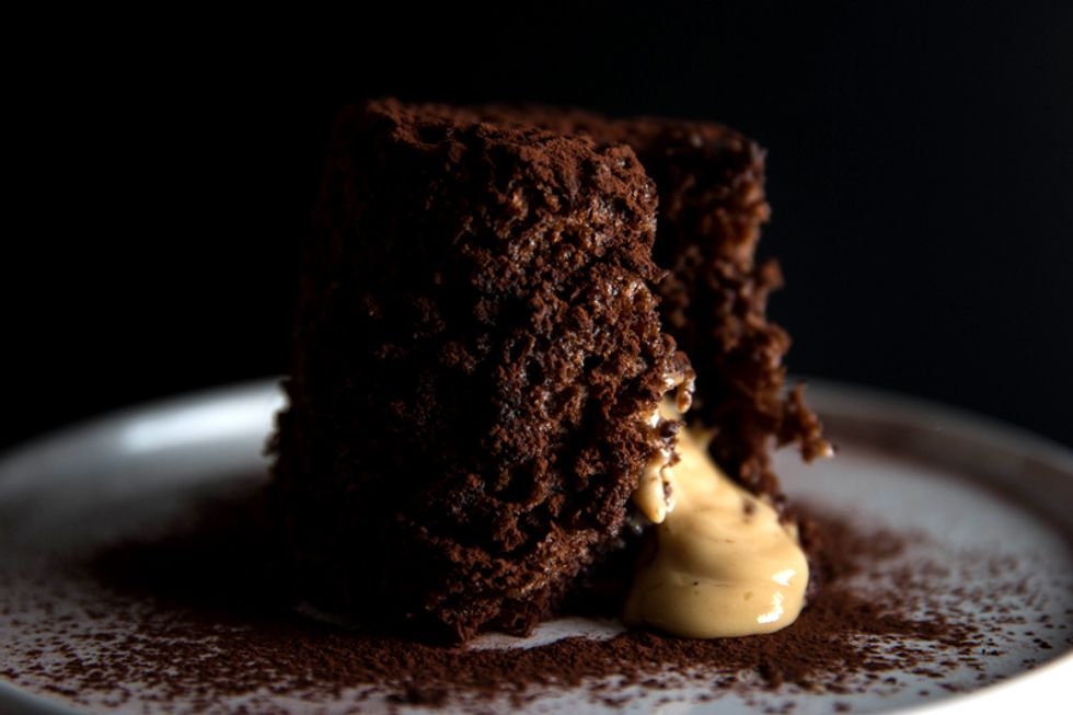 This Molten Peanut Butter Chocolate Microwave Cake is a quick and easy option for an instant dessert. The batter is dispensed from a whipping siphon to ensure it's light and aerated.