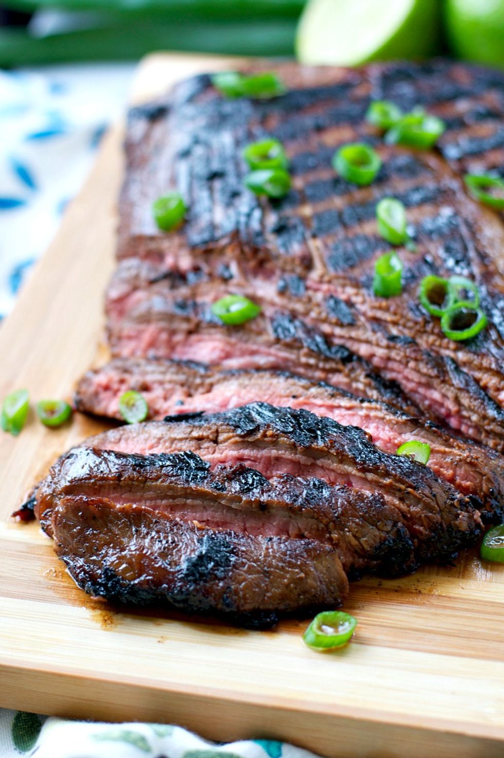 My mom's easy marinated flank steak is a childhood favorite that's stood the test of time! Whether you grill your beef outside, use an indoor grill pan, or broil the meat in the oven, this simple marinade of soy sauce, rice vinegar, ginger, honey, garlic, and green onions, creates a tender and juicy steak that children and adults adore! Serve the sliced flank steak with rice, cornbread, biscuits, ramen noodle salad, or roasted broccoli for a quick, family-friendly meal.